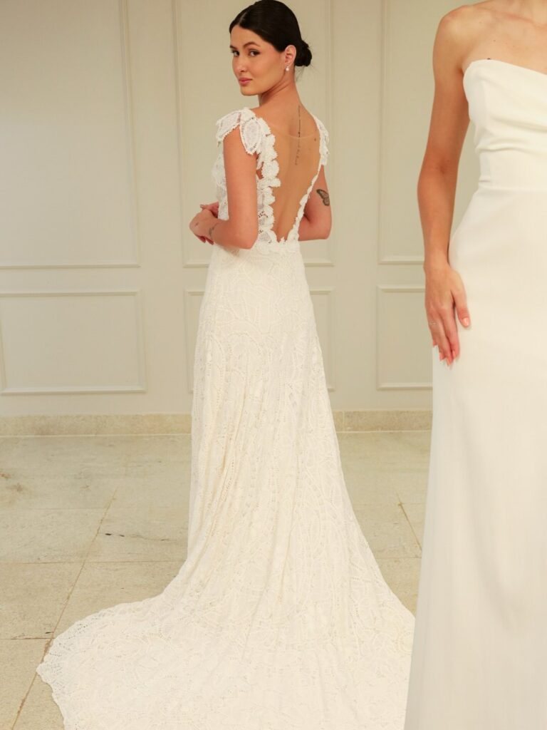 Esse desejo de reconhecimento — e não de encenação — também orienta o trabalho da La Fiancée. “As noivas de hoje buscam, acima de tudo, se reconhecer no espelho”, afirmam. Tecidos agradáveis ao toque, mobilidade e modelos que permitem viver o dia com liberdade tornam-se escolhas naturais. O vestido deixa de ser considerado fantasia e passa a funcionar como forma de expressão, dos valores e do percurso de quem o veste.