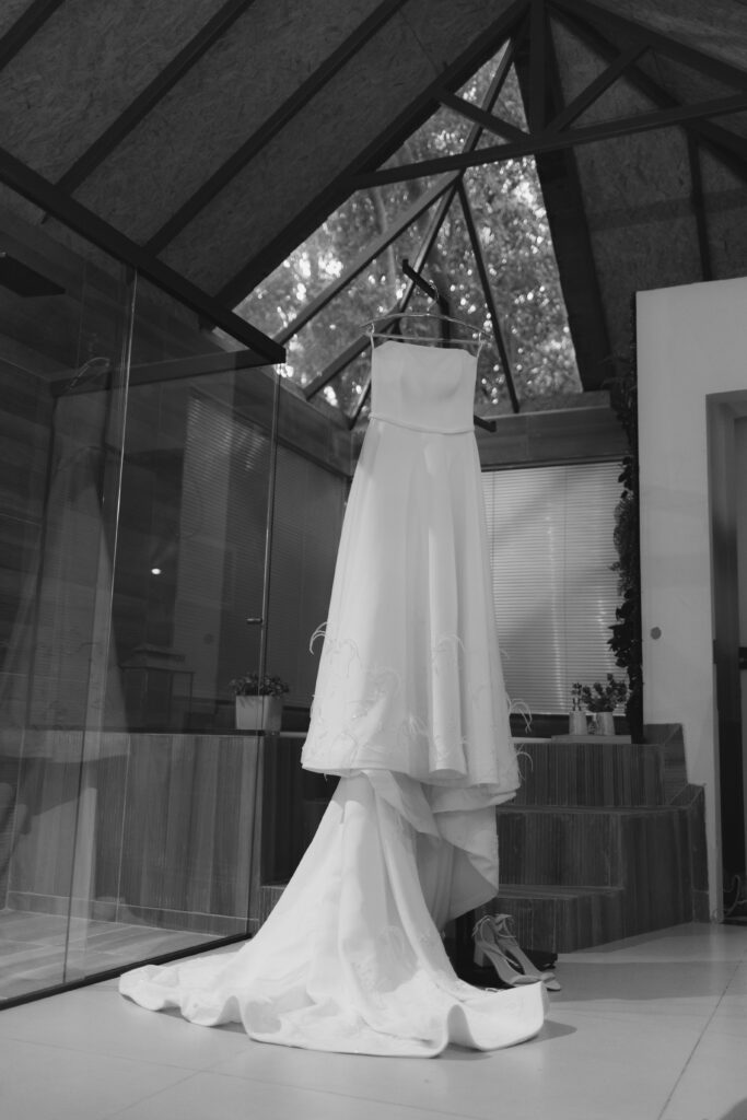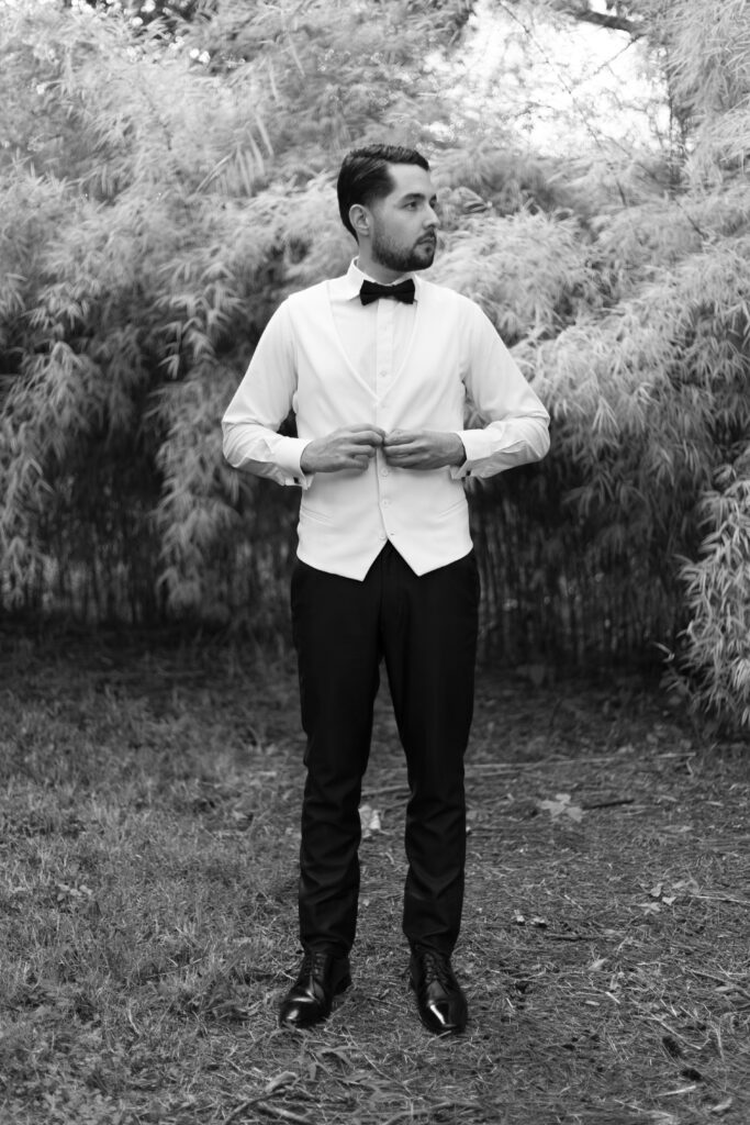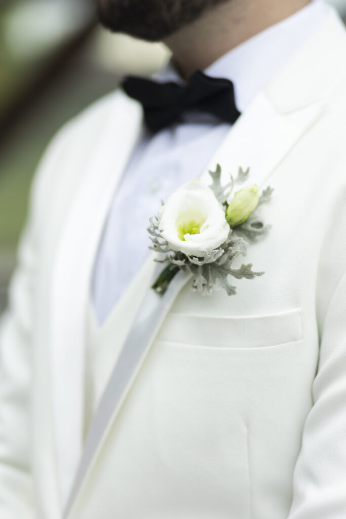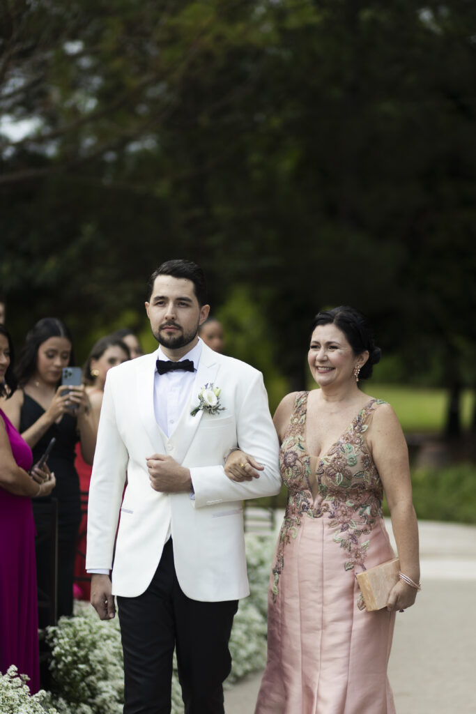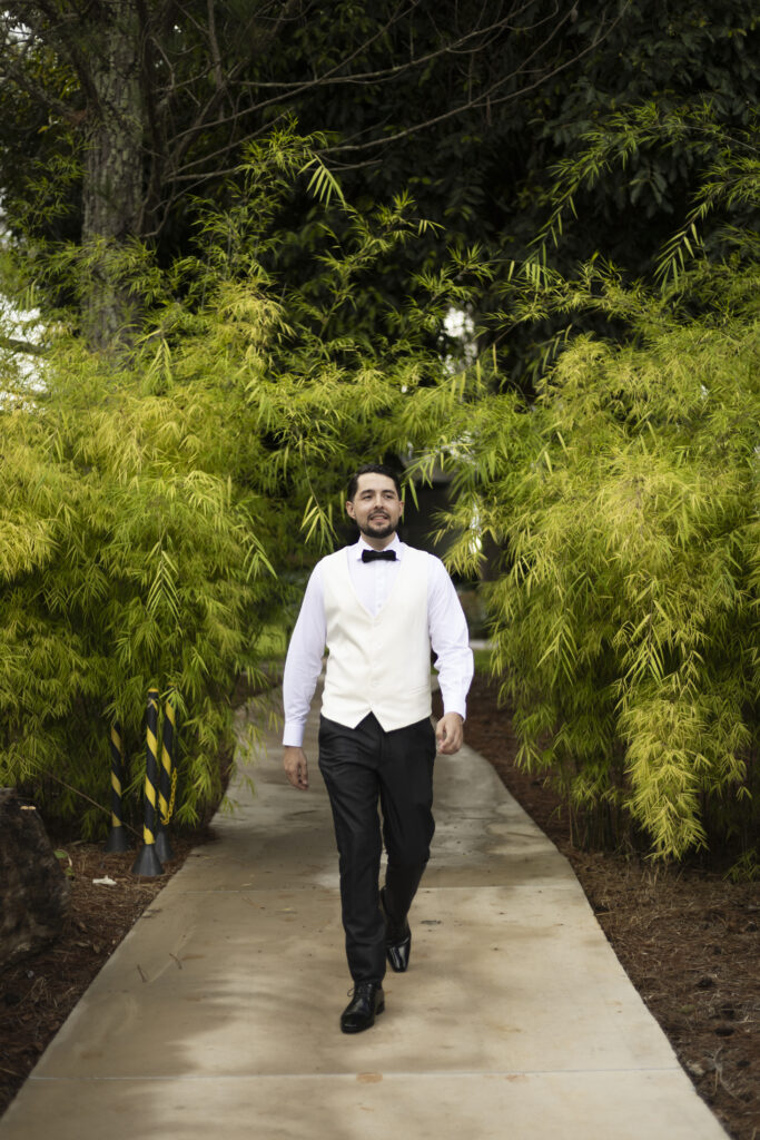 Depois de provar mais de 40 vestidos entre Brasília e Goiânia, Bárbara decidiu fazer o primeiro aluguel com um modelo desenhado exclusivamente para ela, na La Fiancée, exatamente como sonhou. “Foi realmente mágico: todas as provas, o desenho e a ajuda da equipe.” Já Kauê apostou em um smoking clássico, que ele mesmo escolheu e que harmonizou perfeitamente com o look da noiva. “Idealizamos desde o início o uso de smoking, como um príncipe — e ficou lindo no dia”, conta a noiva. A escolha do traje se deu na reconhecida loja Maxime Noivos & Black Tie.
