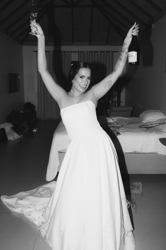 Entre os momentos inesquecíveis, além da chuva inesperada, destacam-se o brinde cheio de energia, o buquê e o whisky disputados e conquistados pelos irmãos do casal, a alegria contagiante dos amigos, as músicas e uma vibração coletiva de amor no ar. Foi um casamento vivido com intensidade, emoção e verdade, que hoje se tornou a lembrança favorita de Bárbara e Kauê. Tudo eternizado pelas lentes sensíveis de Bruna Hevilin e Lucas Carvalho, e pela filmagem emocionante entregue pelos The Paulinos.