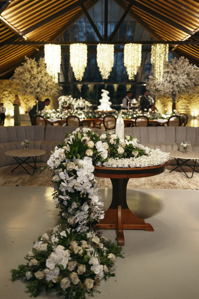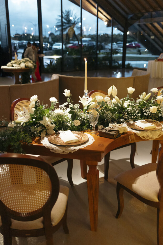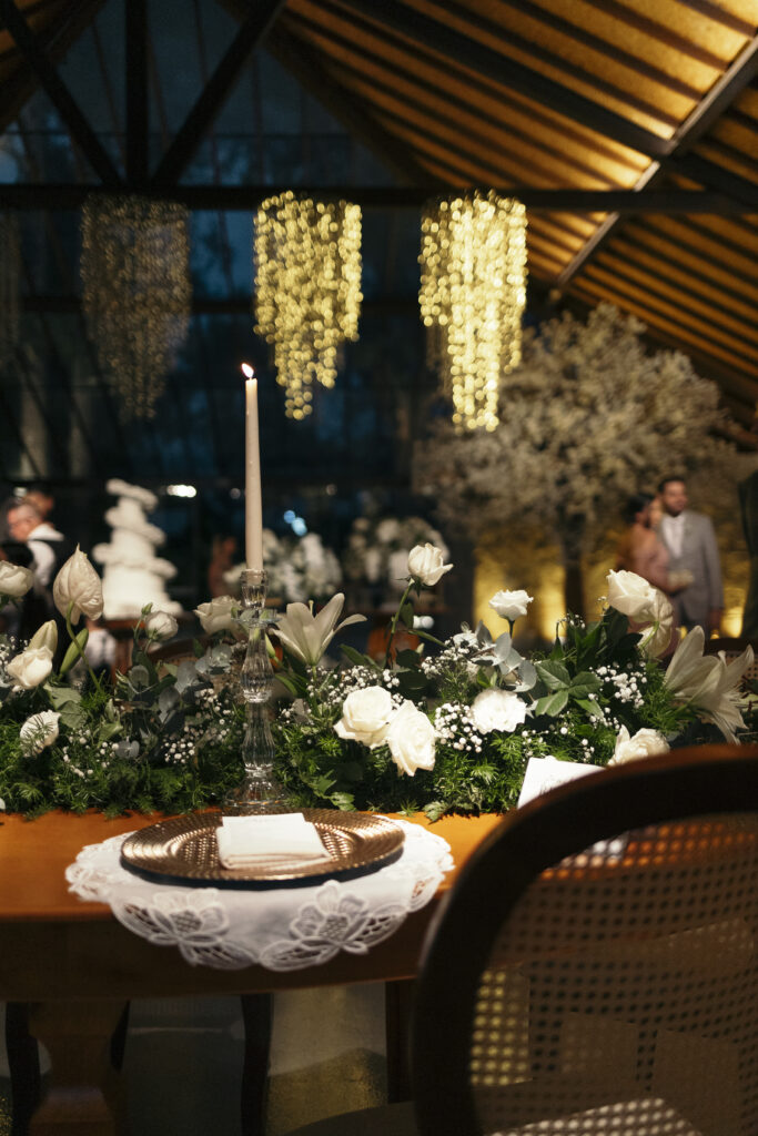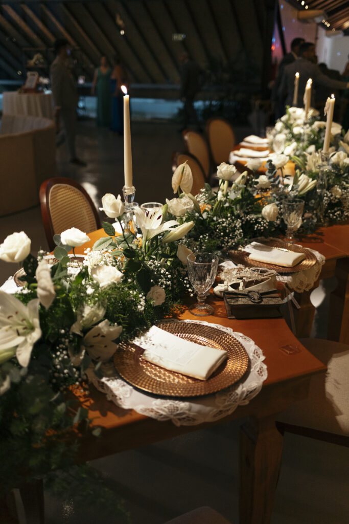 Com apenas uma semana de noivado, o casal já tinha o espaço fechado, o mesmo que Bárbara havia sonhado desde os primeiros meses de namoro. A decoração foi um reflexo do bom gosto e da personalidade do casal: clássica, mas com toques modernos e únicos. Bárbara fez questão de cuidar de cada detalhe e, até mesmo flores fora de época, como os antúrios brancos, foram conseguidas.