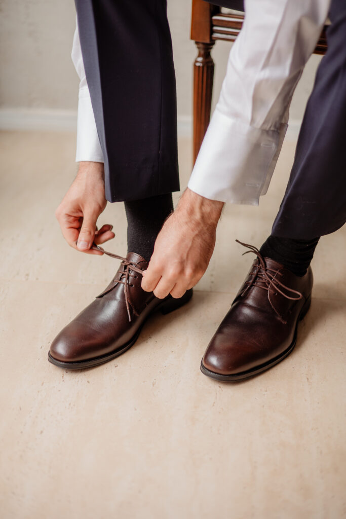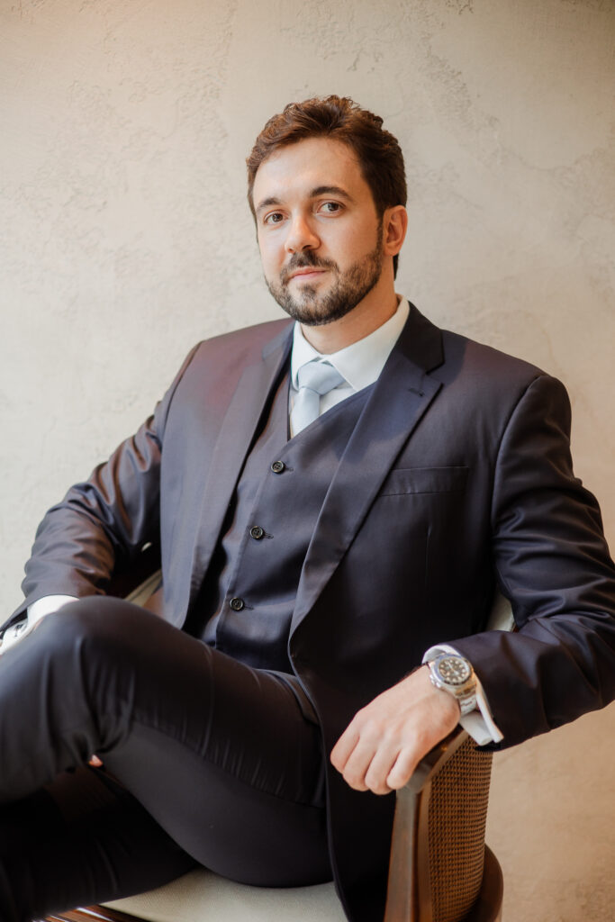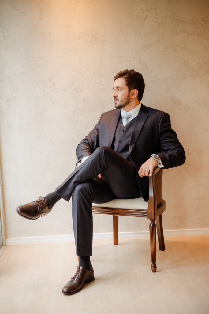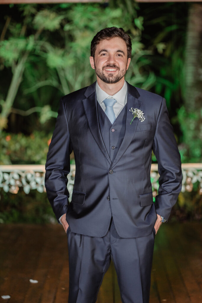 Já o terno de Matheus carrega uma linda carga afetiva: feito sob medida e ajustado na LC Alfaiataria, loja onde também escolheu seus clássicos calçados. Um detalhe especial é que Matheus optou por usar o mesmo modelo usado pelo pai, anos antes, em seu casamento.