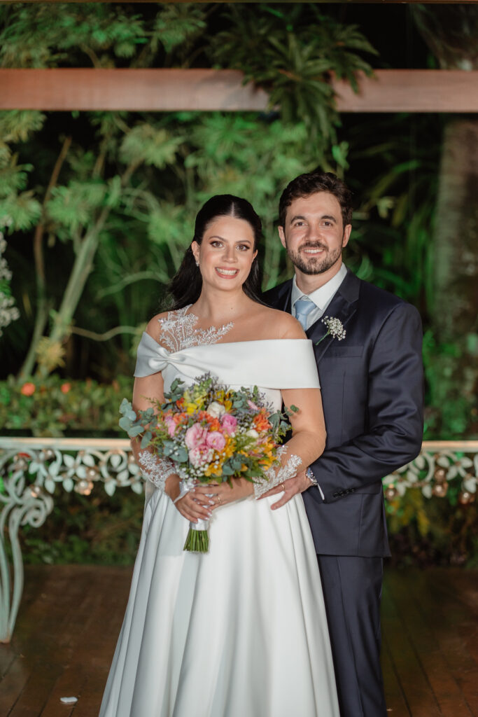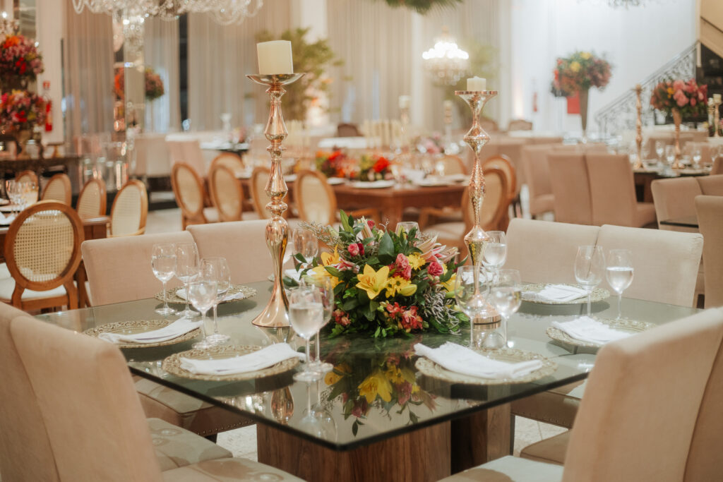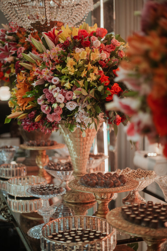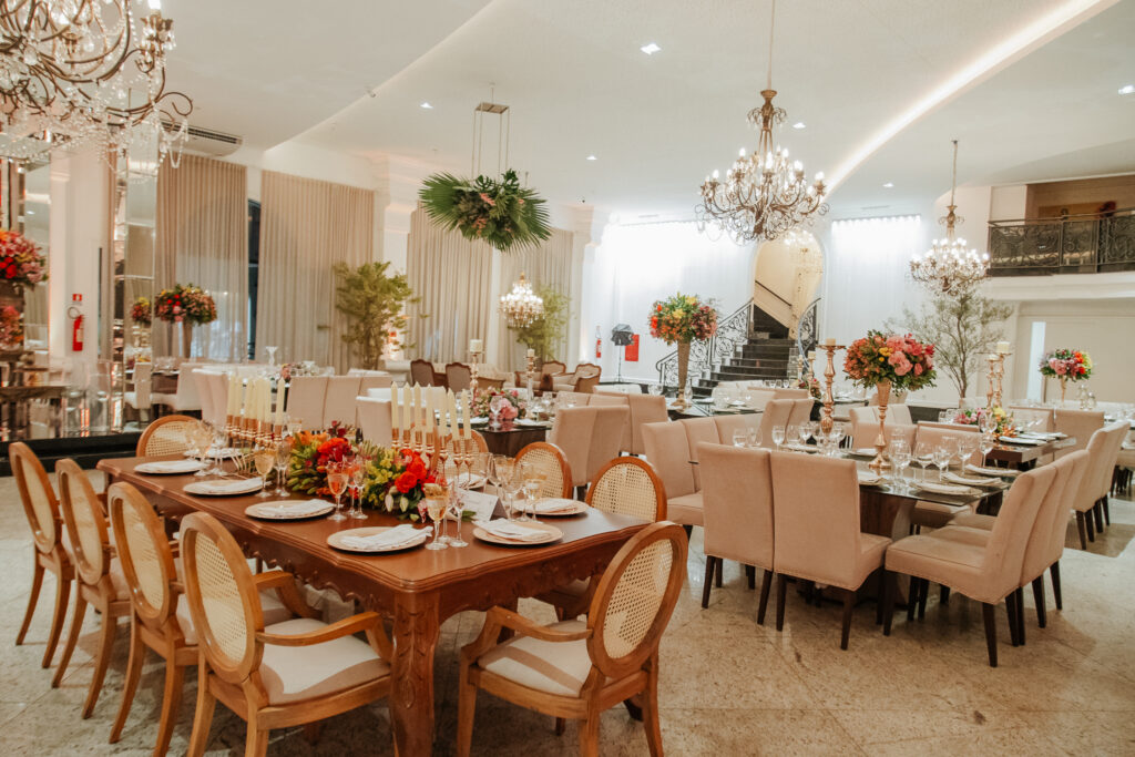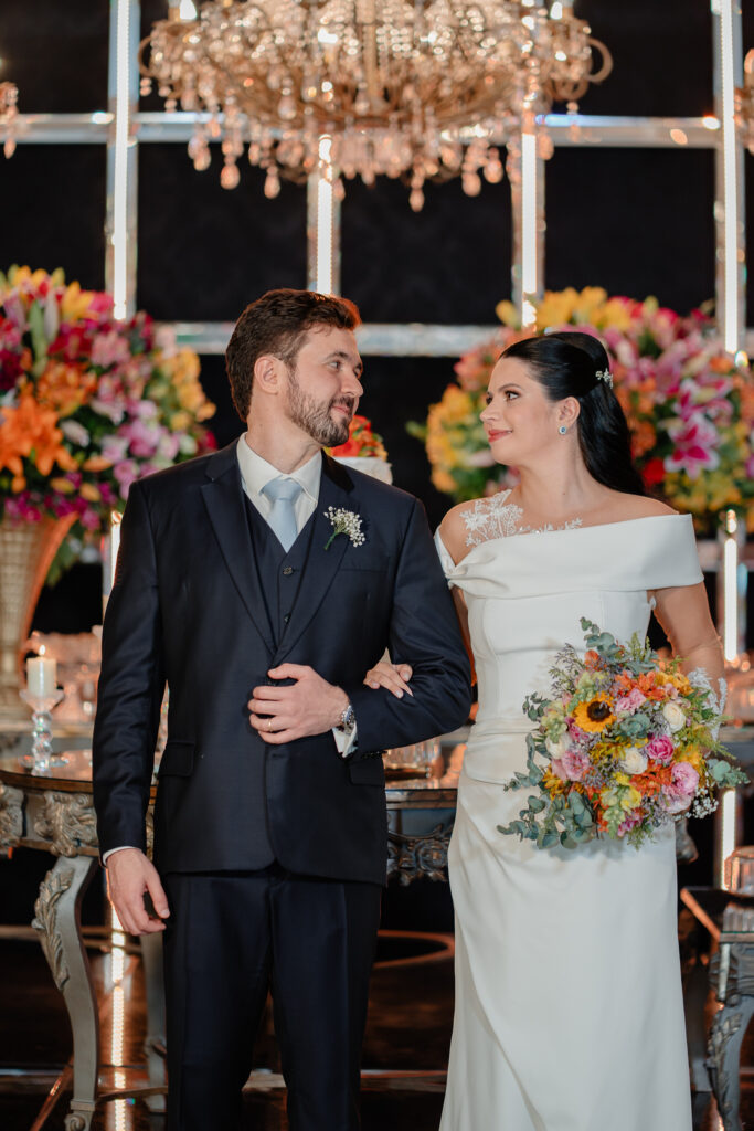 O casal levou um ano inteiro para planejar o casamento dos sonhos. Tudo começou pela escolha do espaço, seguida da busca pelos demais fornecedores. A organização fluiu de forma tranquila, com forte apoio da família, mas sempre com o olhar atento e cuidadoso dos noivos, que faziam questão de conhecer todas as possibilidades antes de fechar com quem realmente representasse seus gostos e valores.