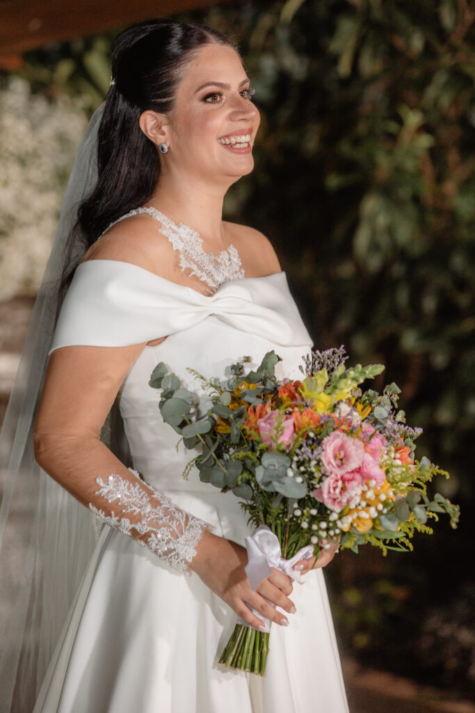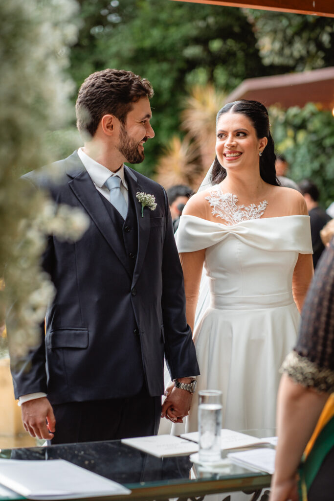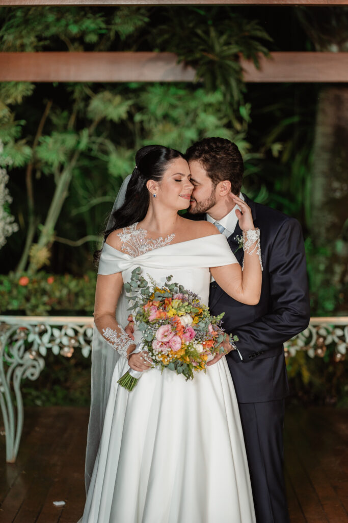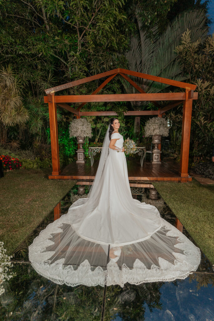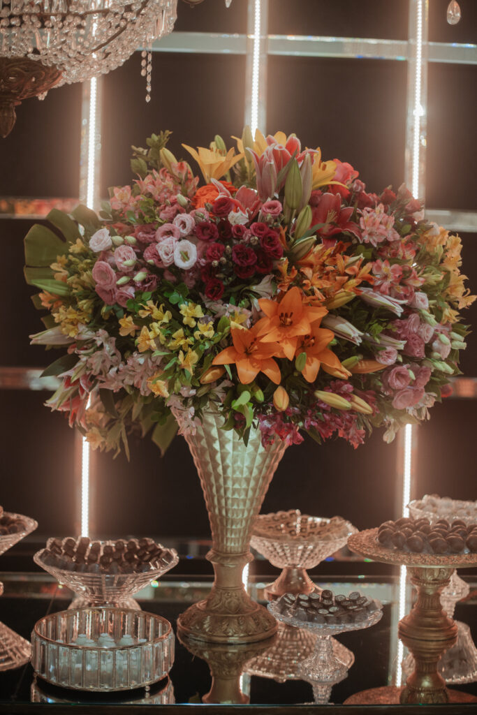 O casal levou um ano inteiro para planejar o casamento dos sonhos. Tudo começou pela escolha do espaço, seguida da busca pelos demais fornecedores. A organização fluiu de forma tranquila, com forte apoio da família, mas sempre com o olhar atento e cuidadoso dos noivos, que faziam questão de conhecer todas as possibilidades antes de fechar com quem realmente representasse seus gostos e valores.