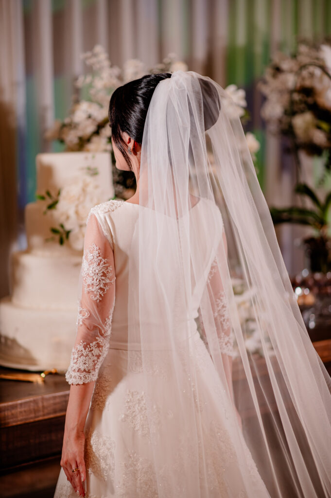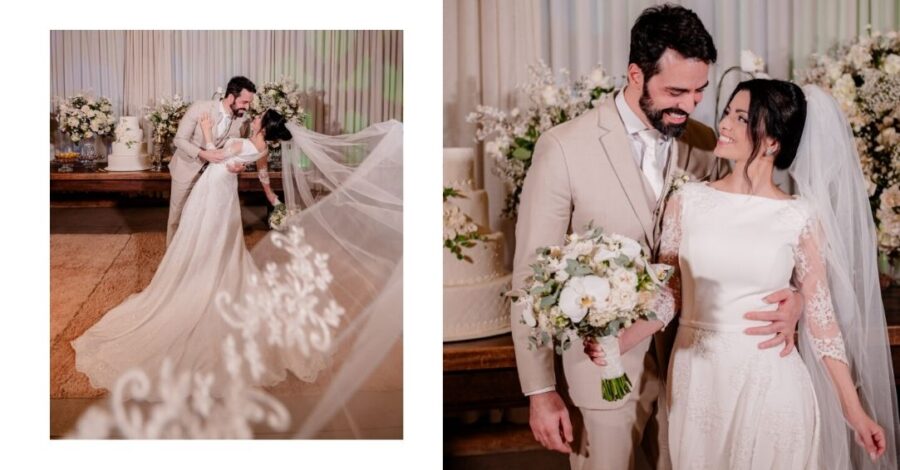 E, quando o assunto são os trajes dos noivos, o que não faltou foram boas escolhas. Gustavo optou por um terno da Maxime Noivos e Black Tie, alinhado à elegância e à identidade visual do casamento. Já o vestido de Amanda foi confeccionado no exterior, mas ganhou seu caimento final com ajustes realizados na La Fiancée, garantindo um resultado preciso e sofisticado.
