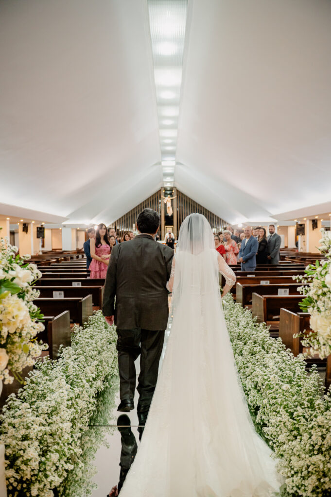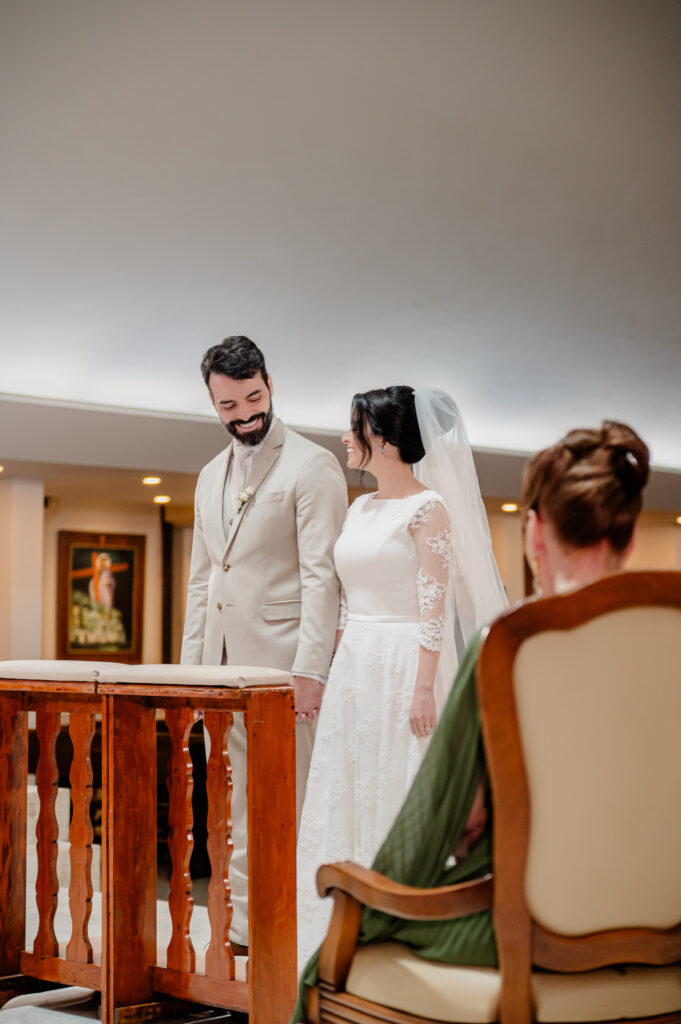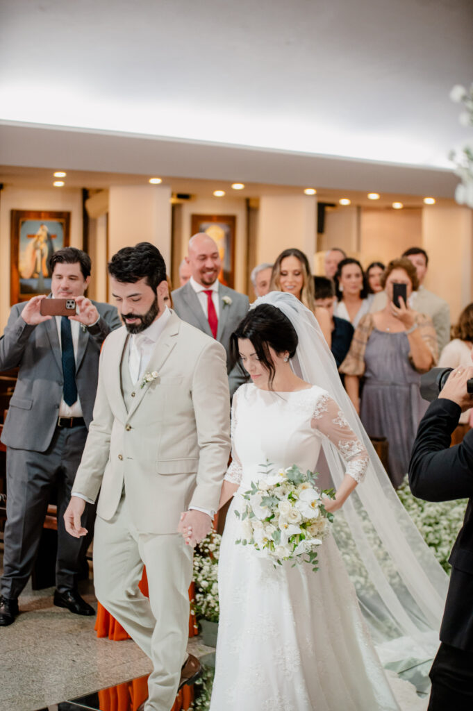 Além de um dia inesquecível, a celebração foi marcada também por momentos de forte significado. Entre eles, a entrada das alianças ao som de Ave Maria, conduzida pelo sobrinho da noiva, carregando um terço de valor afetivo — pois pertencia à recém-falecida avó da noiva. O gesto criou um momento de memória regado de amor.