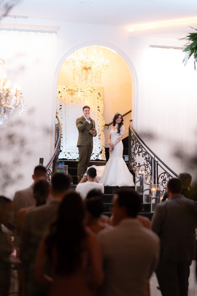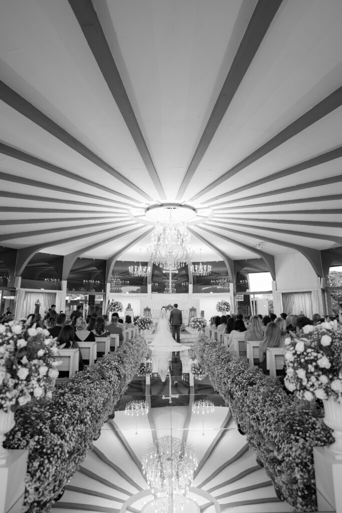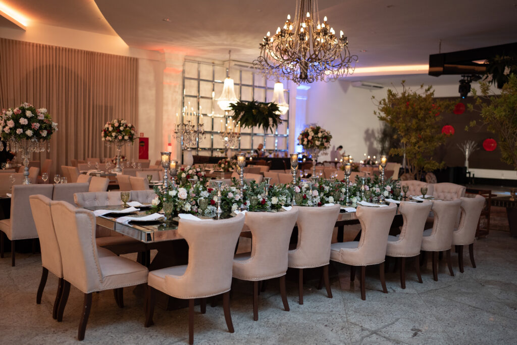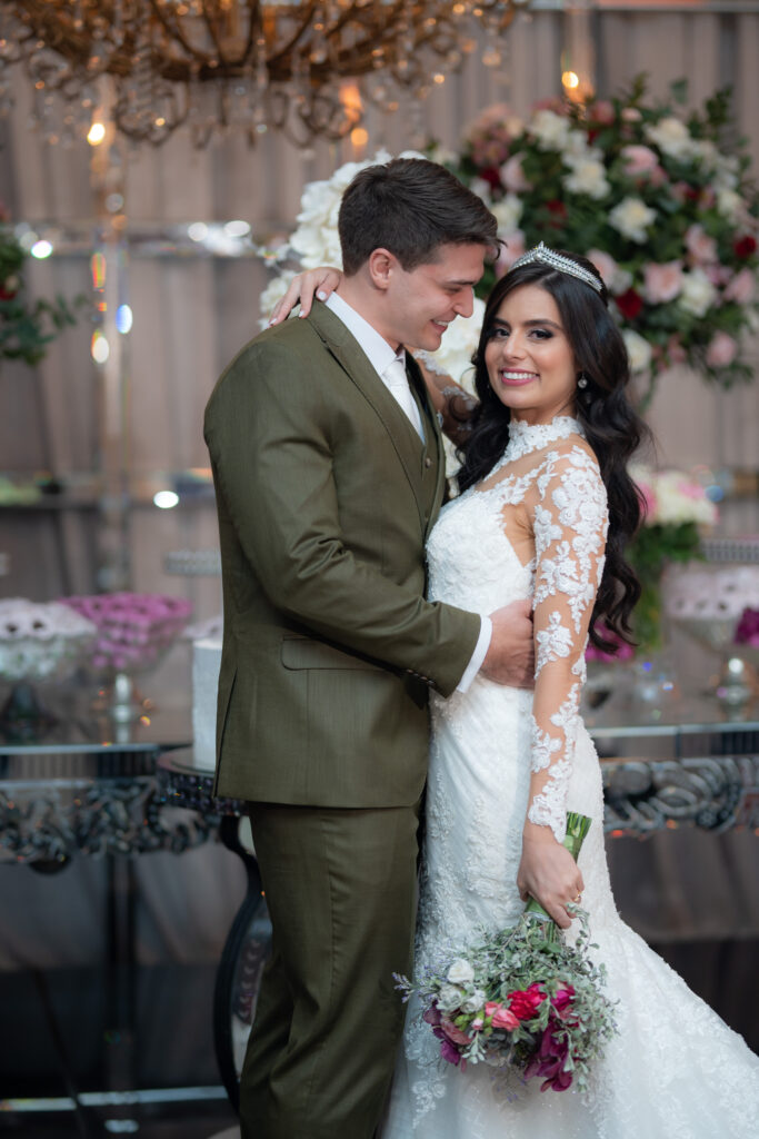 Após pesquisar diversos locais, o casal se encantou pelo Dúnia City Hall, um espaço digno de filmes, com estilo clássico e elegante, que conquistou tanto os noivos quanto seus pais. Além da beleza, oferecia um pacote completo que facilitou a organização do casamento, incluindo, além do espaço, mobília, decoração, buffet e DJ, por exemplo. A equipe do local prestou serviços de alta qualidade, tornando o dia ainda mais especial, afirmam os noivos. “Quando fechamos o contrato, ficamos radiantes e mal podíamos acreditar que nosso casamento seria realizado em um lugar tão extraordinário”.