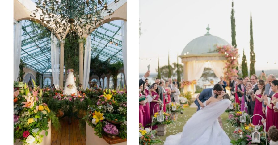 O primeiro capítulo da celebração aconteceu em 7 de junho, com a bênção da Igreja e um jantar íntimo. Mas foi em 14 de junho de 2025 que a história ganhou sua página mais luminosa: o casamento no Villa Giardini.