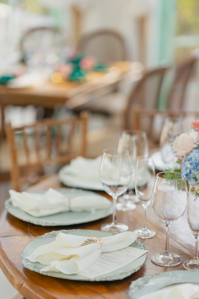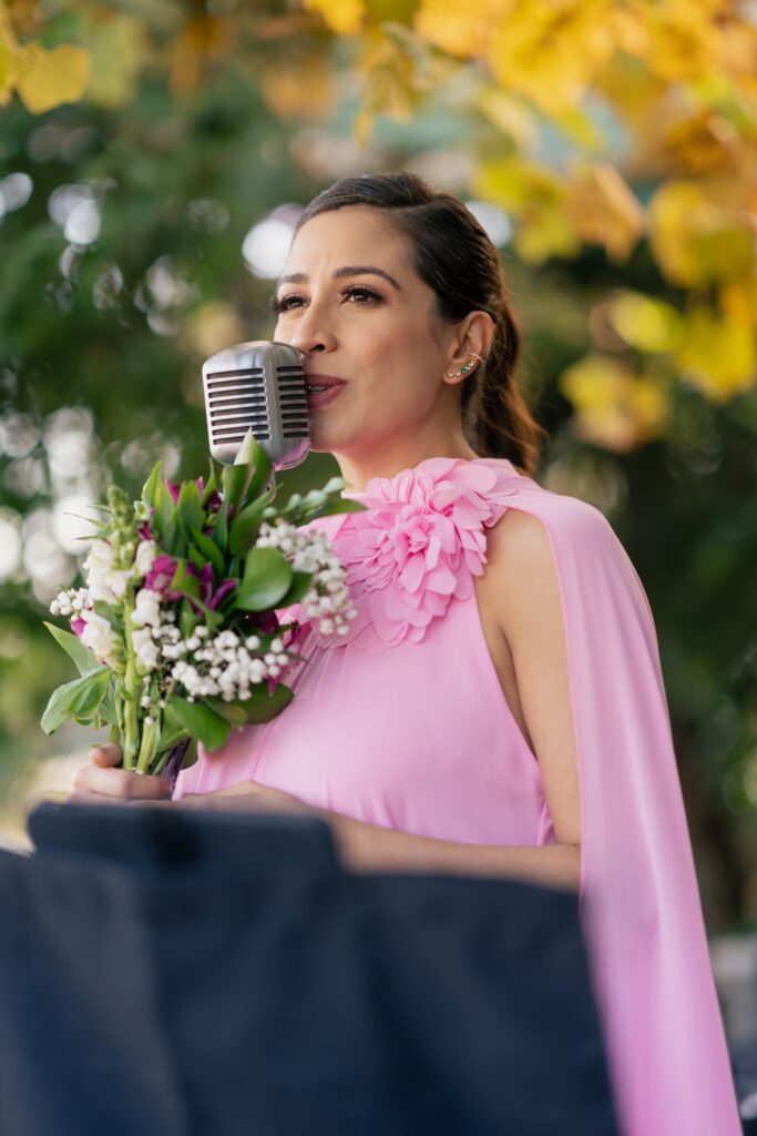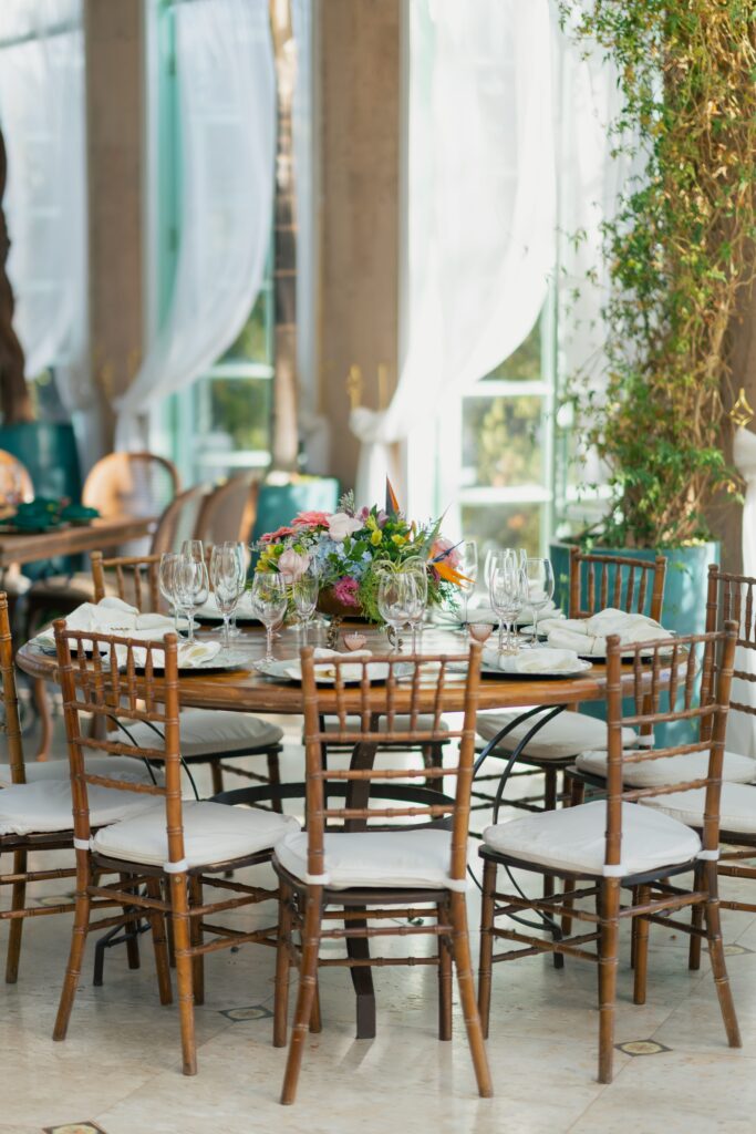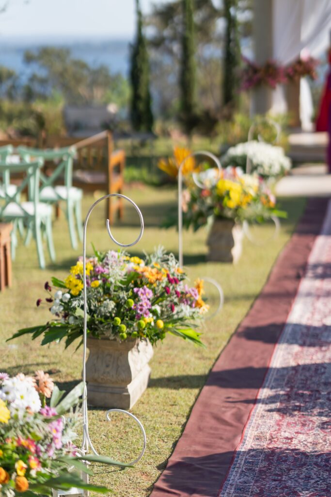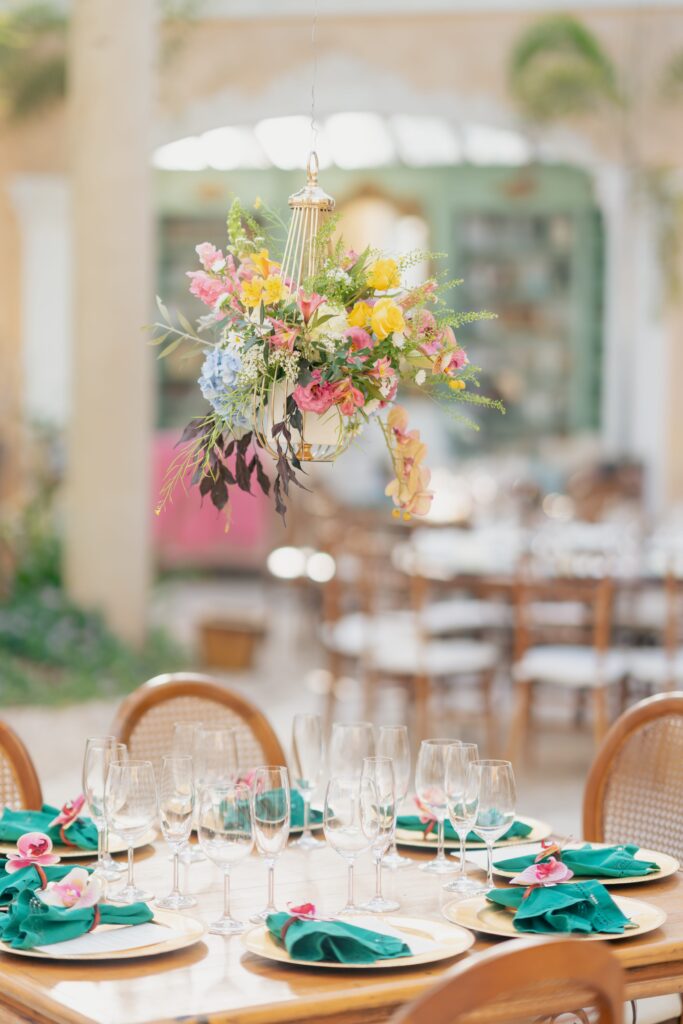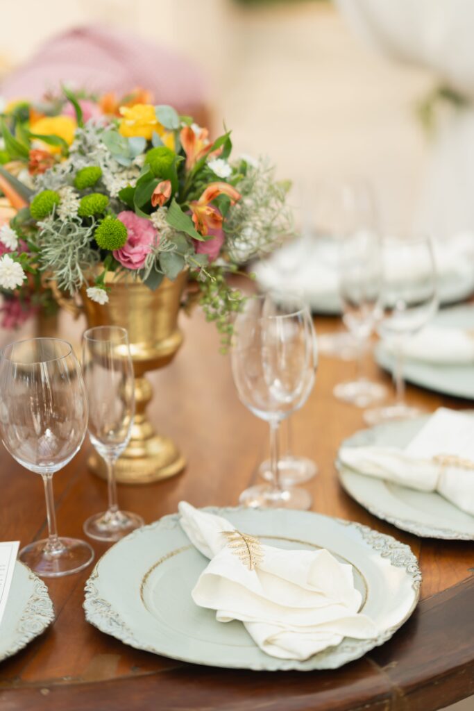 O espaço estava deslumbrante, a decoração em tons de rosa, lavanda, laranja antigo e verde, num cenário que parecia suspenso entre o real e o sonho. A Villa Giardini transformou cada detalhe em poesia, com arranjos delicados, mesas dignas de realeza e o pôr do sol servindo de moldura.