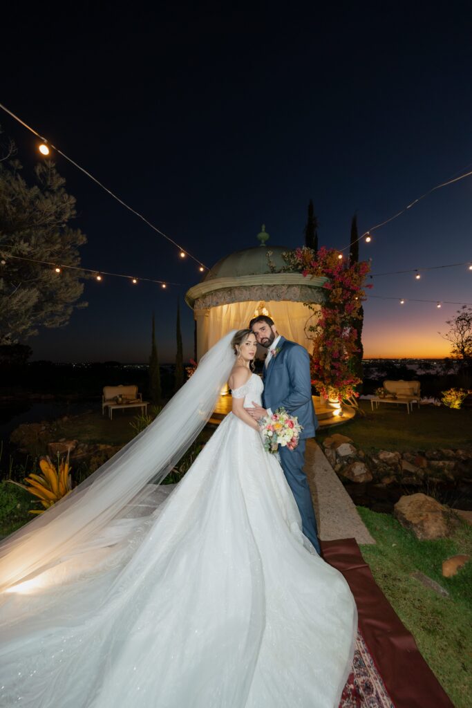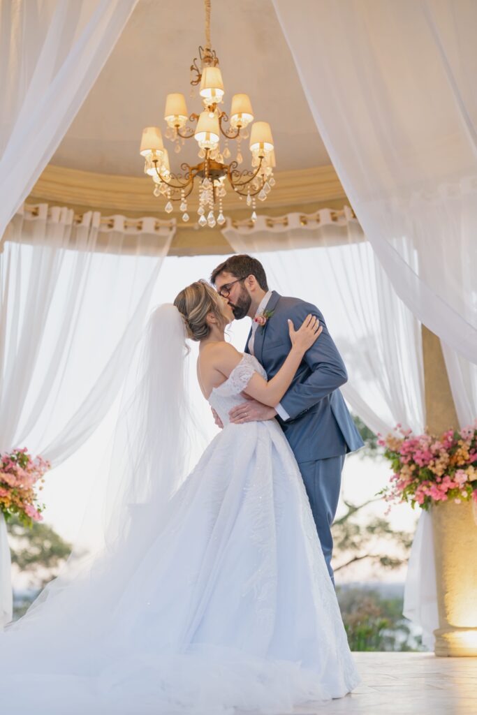 Foram dois anos de planejamento, escolhas, sonhos e ajustes. Entre dúvidas, pausas e retomadas, o Villa Giardini surgiu como a escolha que mudaria tudo. Um espaço que traduzia a essência deles: a beleza clássica, o pôr do sol inesquecível de Brasília e a atmosfera que remetia à Toscana, terra que ambos haviam amado conhecer. Com o apoio preciso do cerimonial de Jakeline Alessi, cada detalhe foi sendo alinhado com paciência e maestria.
