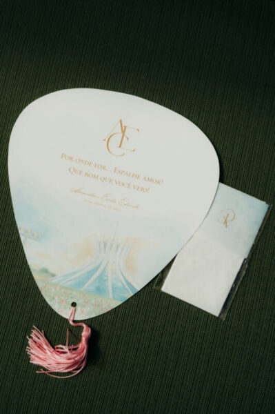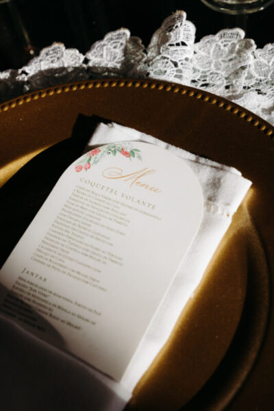 A papelaria assinada por Kelly, da Paper Glue, deu sofisticação a cada detalhe, do “Save the Date” ao menu, em perfeita harmonia com o sonho dos noivos.