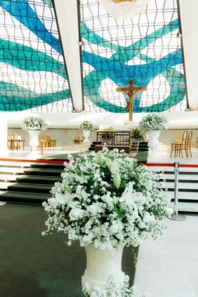O espaço escolhido surgiu quase como um sinal divino. Após desejarem inicialmente um gramado, perceberam em um casamento de salão que aquilo combinava mais com sua essência. Assim que chegaram à Villa Rizza, a recepção calorosa e a presença de uma imagem de Nossa Senhora confirmaram: aquele seria o lugar perfeito para abençoar sua união.