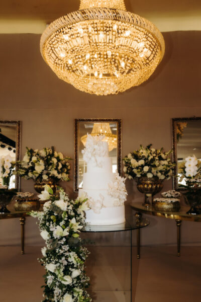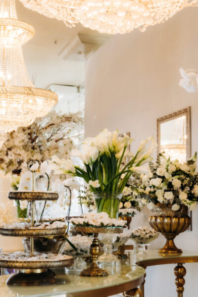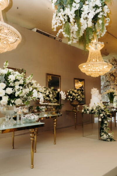 A decoração trouxe a beleza atemporal: verde, branco e toques de dourado. Simples, sofisticada e delicada, como Alessandra sempre sonhou.