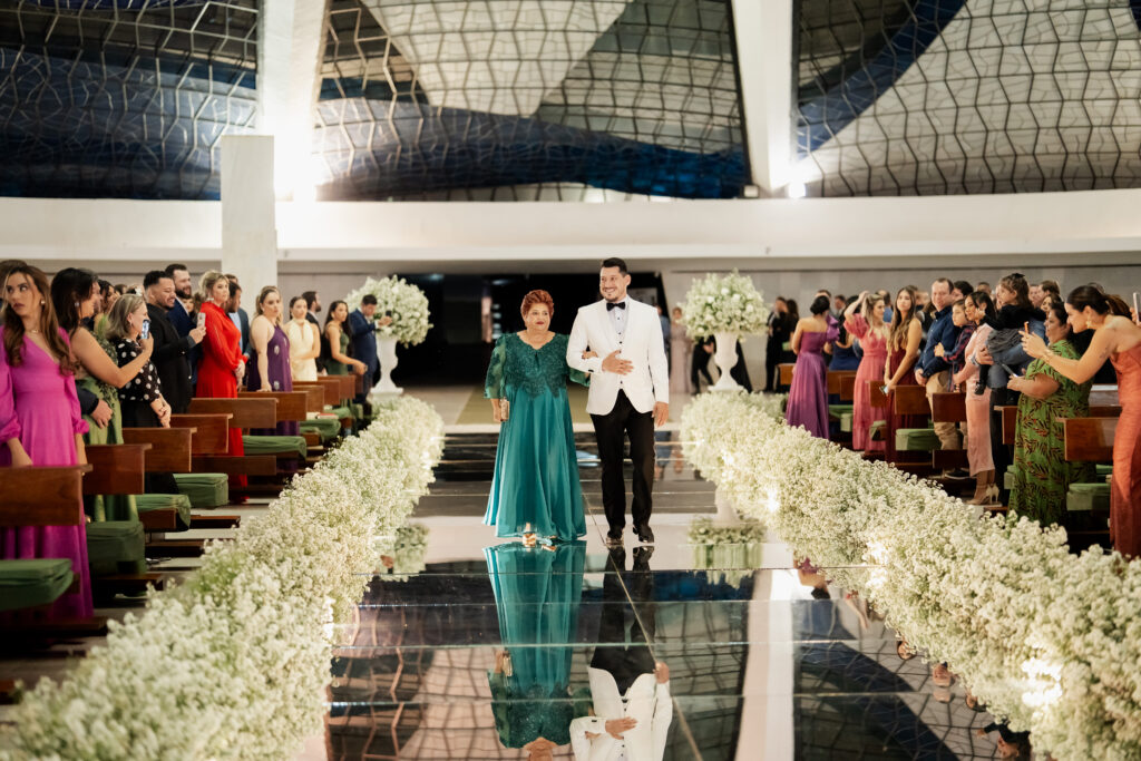 O primeiro passo dessa jornada foi a escolha do cerimonialista Pedro Marra, que se tornaria peça-chave em todo o processo. Pedro foi mais do que um organizador, foi um amigo, conselheiro e presença constante em cada decisão, da escolha do vestido da noiva até o terno do noivo. Graças à sua dedicação e sensibilidade, o que para muitos é um processo estressante tornou-se, para Nikole e Gustavo, um período leve, prazeroso e cheio de boas memórias.