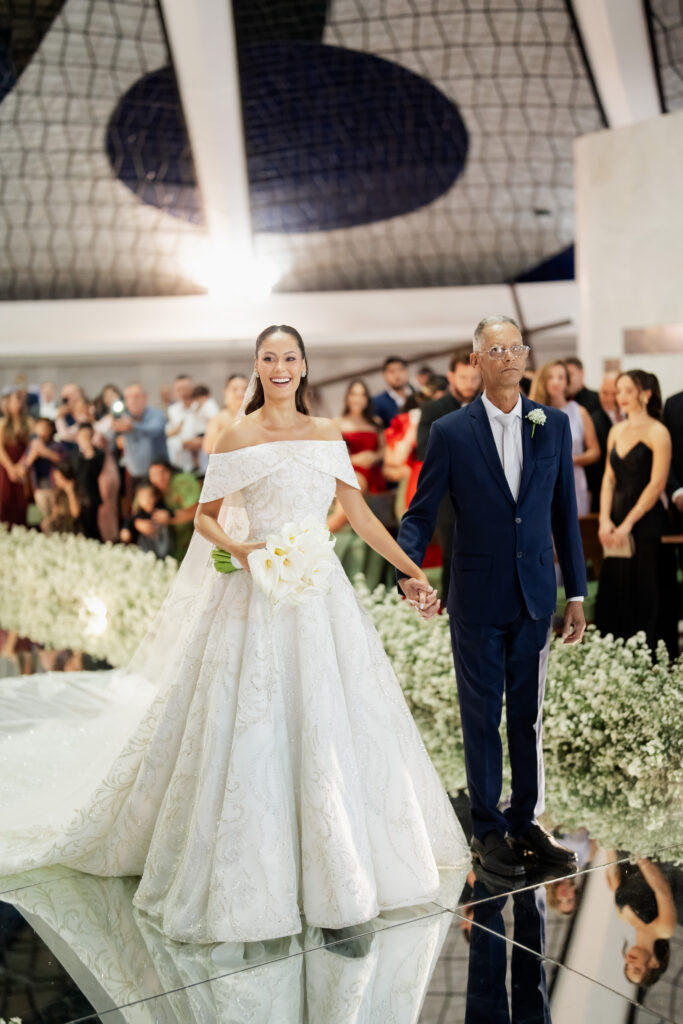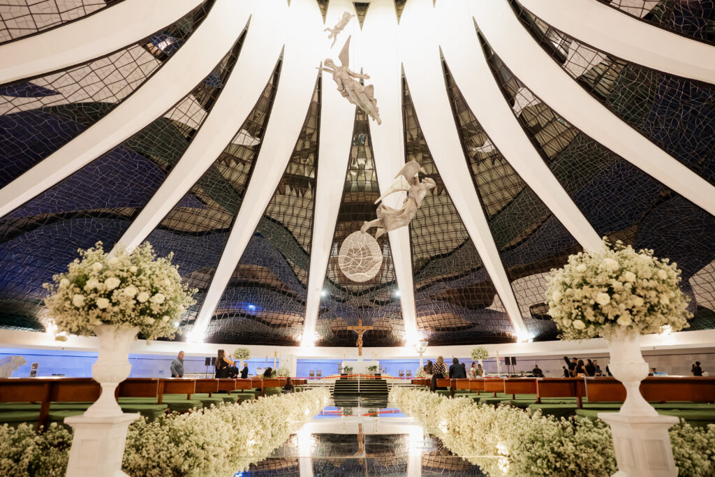 Local da Cerimônia: Catedral de Brasília | Celebrante: Diácono Polleto | Traje da noiva: Fernando Peixoto | Decoração cerimônia e Buquê: Sara Gonçalves | Sapatos: Uza | Alianças: Ouro e Terra | Cabelo e Maquiagem (recepção): Igor Valente | Fotógrafo: Bruno Vieira | Storemaker: Thai Feitosa | Música Cerimônia: Davi Ramiro | Atração da festa: Thalles e Junior banda e Ana Ximenes DJ| Bolo, Doces e Bem-Casados: Maria Amelia | Papelaria: : B Relevo | Serviço de transporte: FR Execultive | Lua de mel: CVC viagens – Costa do Sauipe Ala So