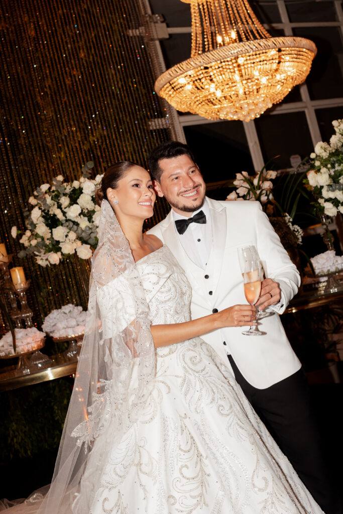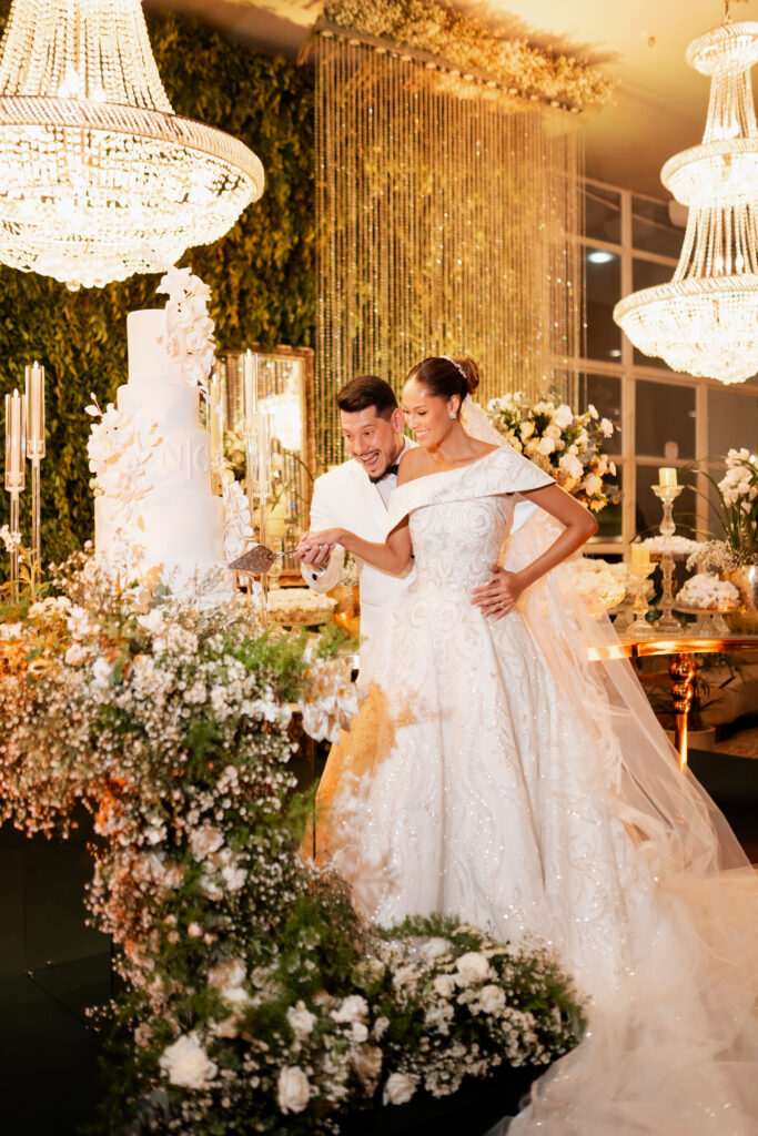 A escolha dos trajes também contou sua própria história. O vestido de Nikole foi resultado de uma saga de experimentações e surpresas até que o modelo perfeito fosse encontrado. No fim, optou por um vestido com cauda removível, que unia o encanto da tradição à praticidade para dançar até o amanhecer. Já Gustavo, com trajes da Maxine Noivos e Black Tie, esbanjou elegância e sobriedade, exatamente como havia imaginado.