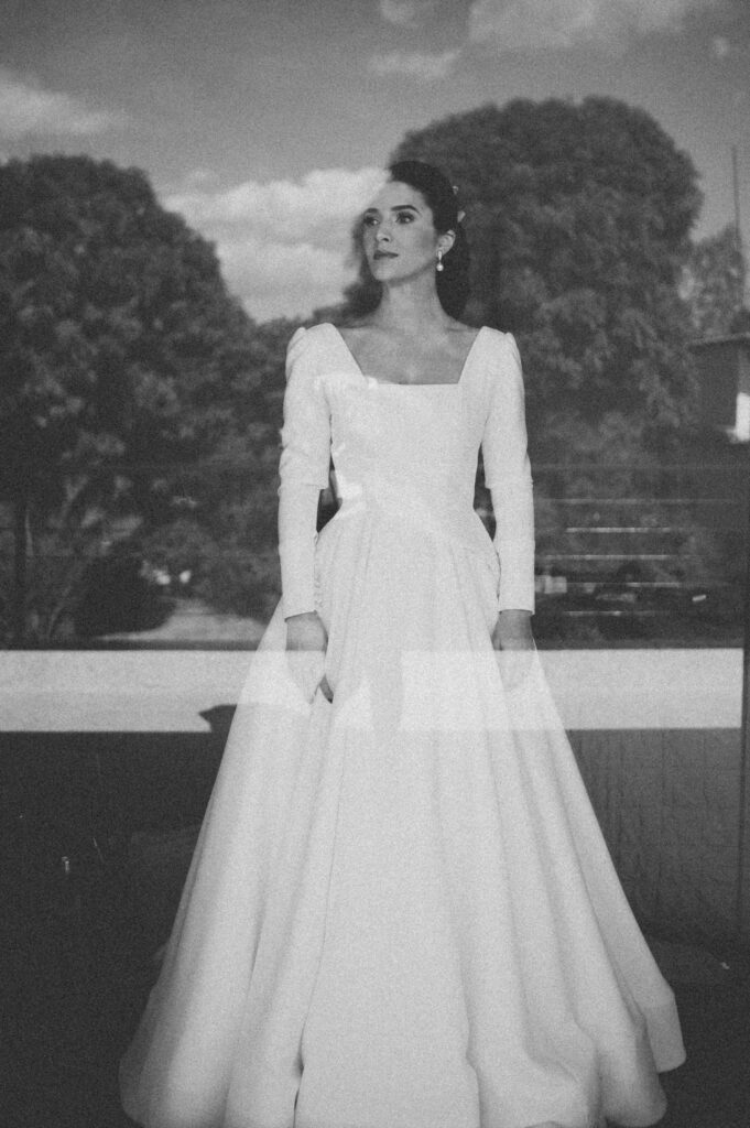 O vestido da noiva foi outro ponto de orgulho. “Eu sempre soube que queria algo sem muitos detalhes, mas que fosse superelegante. O resultado ficou incrível, e todos disseram que o vestido era a minha cara.” Feito de crepe de alfaiataria, com decote quadrado e drapeado na cintura, o modelo era perfeito e moderno, como ela desejava. Para os pés, Helena escolheu um delicado modelo de Marianna Machado. No dia do casamento, ela, sua mãe e irmã contaram com as mãos de fada de Glaucie Garcia para a maquiagem. “Foi unanimidade: foram as makes mais lindas da vida! O trabalho dela é realmente sensível, uma verdadeira artista.”