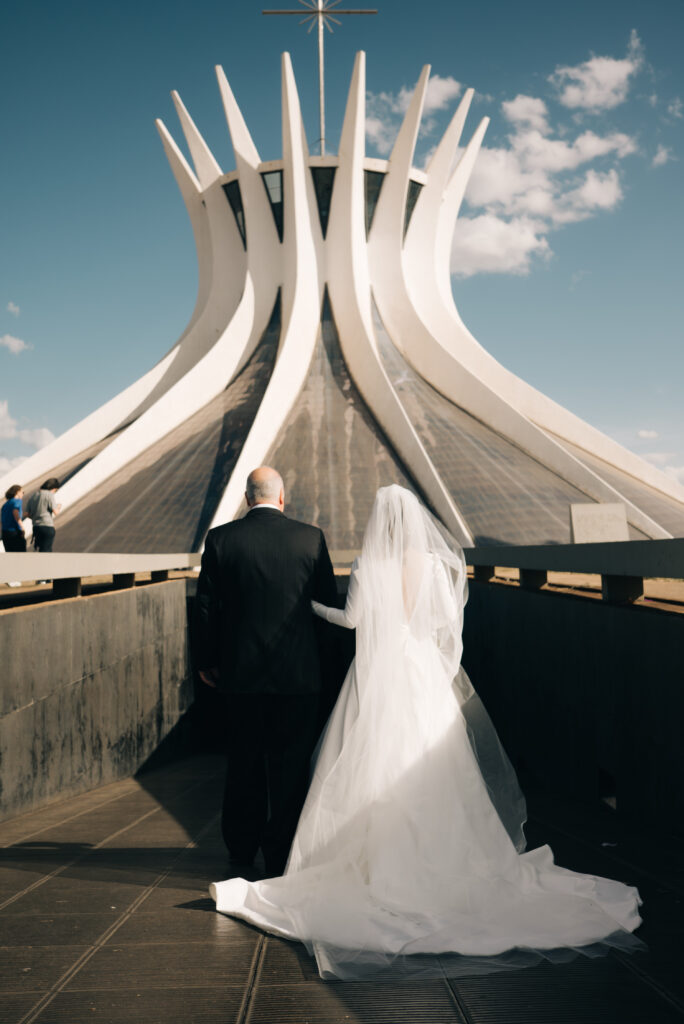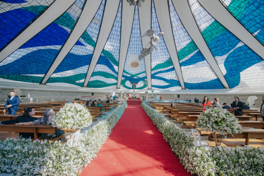 A organização do casamento começou após a confirmação da data na Catedral de Brasília, o local dos sonhos dos noivos para a cerimônia. “O processo durou cerca de um ano. O Victor havia se mudado de Brasília, então foi desafiador organizar tudo à distância. Por sorte, ele vinha com frequência, e concentrávamos os compromissos presenciais durante suas visitas. As reuniões online nos ajudaram muito”, explica a noiva.