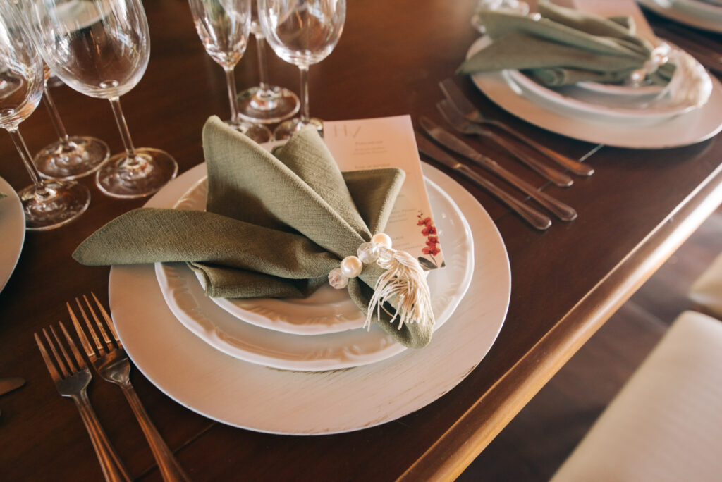 Detalhes cheios de significado marcaram o casamento, como os porta-guardanapos feitos pela avó da noiva. “Foi um toque especial que trouxe ainda mais emoção ao evento”, afirma. A papelaria do casamento seguiu uma proposta que mesclou o clássico e o contemporâneo: por fora, um convite tradicional; por dentro, um lindo desenho dos vitrais da Catedral com folhas de orquídea. Como frase principal, Helena escolheu um verso de Cora Coralina: “E desde então caminhamos juntos pela vida…”.