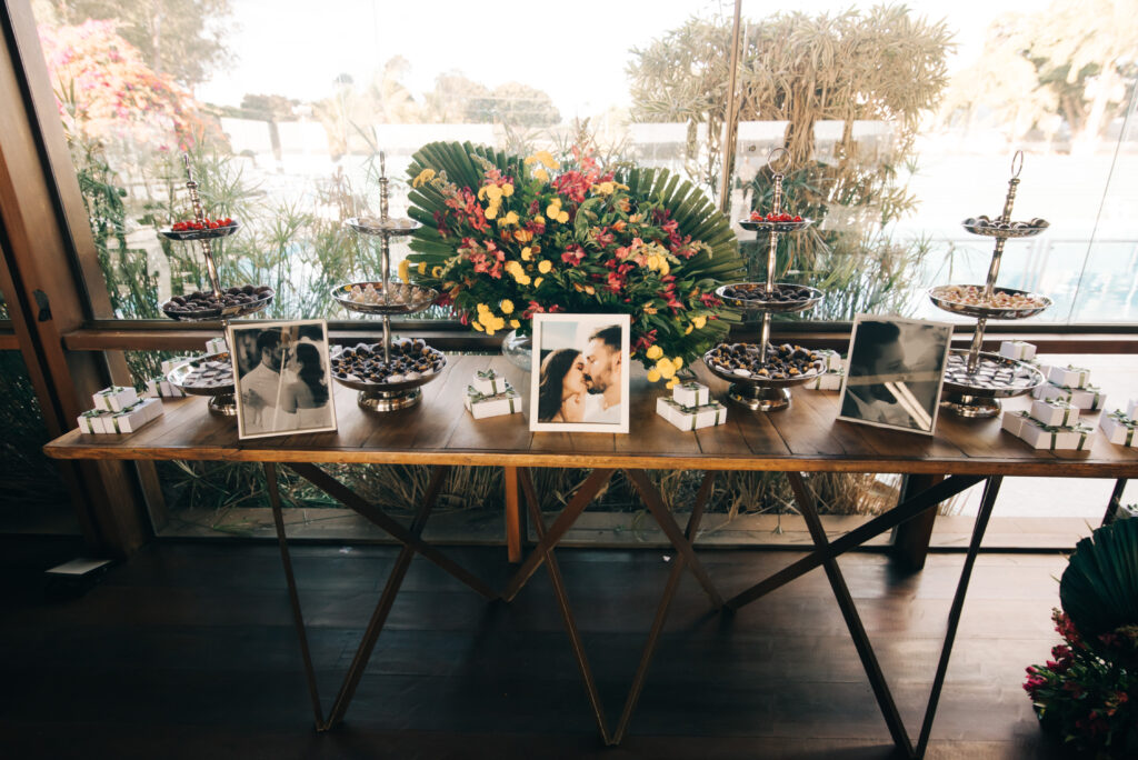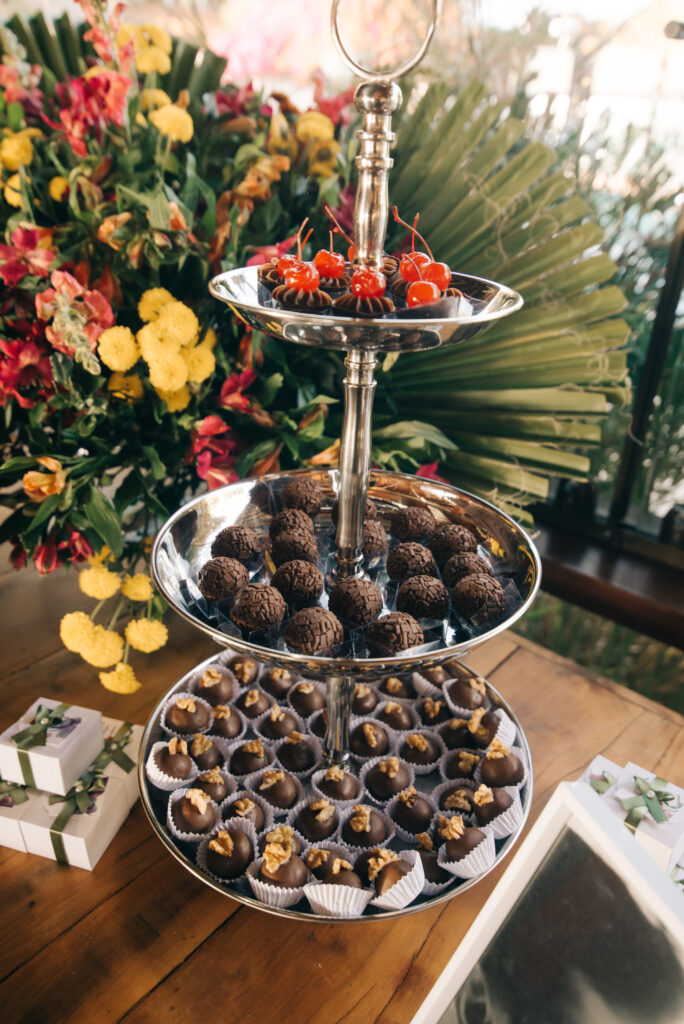 A escolha do bolo e doces também foi especial. Com poucas degustações, chegaram à seleção perfeita, com destaque para o bombom de morango, puxa de pistache e bolinho de abacaxi. “Ainda tivemos um toque especial com os bombons de nozes feitos pela minha avó paterna. Foi muito significativo para nós.”