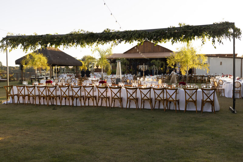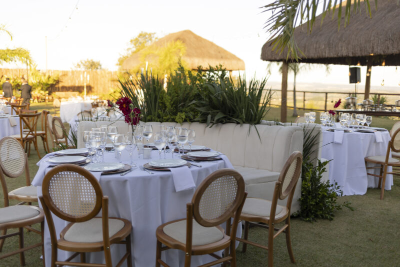 A escolha do espaço para o casamento foi marcada por liberdade, conexão e um toque da Itália no coração de Brasília. O casal optou por um espaço que não limitava o tempo de festa, além de permitir total autonomia na decoração e organização do ambiente. O atendimento atencioso também garantiu aos noivos o direito à cabana exclusiva para a noite de núpcias. Com uma vista deslumbrante que remete à Toscana, o espaço encantou especialmente Larissa, que já morou por cerca de cinco anos na Itália.