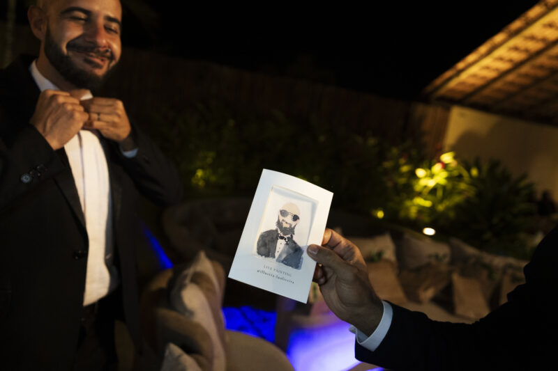 Durante a cerimônia, um toque mágico e delicado tomou conta do ambiente com a presença da artista Lu Oliveira, que criou uma obra de arte em aquarela ao vivo. Cada traço capturava a emoção do momento, transformando em cores e formas a beleza do amor que ali se celebrava. Foi um presente encantador, que deixou a cerimônia ainda mais especial e cheia de significado para os noivos e convidados.
