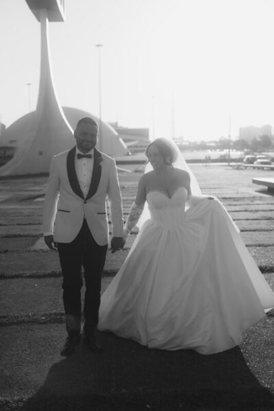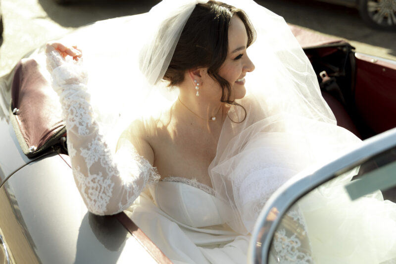 A escolha do vestido de noiva foi um verdadeiro capítulo à parte na história de Larissa. Exigente e determinada, ela buscava aquele momento mágico digno do programa “Say Yes to the Dress”. Após experimentar quase 50 modelos, a decisão veio de forma inesperada, a poucas semanas de sua viagem ao Brasil. Entrou sozinha em uma loja quase fechando e, ao ver um modelo com corpete, sentiu no coração que havia encontrado o tal. “Esse é o meu vestido”, disse com convicção à atendente. Ao vesti-lo, não teve dúvidas: era exatamente o que imaginava. O modelo tomara que caia, com corset marcado e inspiração vintage e renascentista, refletia sua força, feminilidade e a mulher aventureira que havia viajado sozinha por mais de 13 países. “Tenho muito orgulho da mulher que me tornei, e queria que isso transparecesse no meu vestido”.