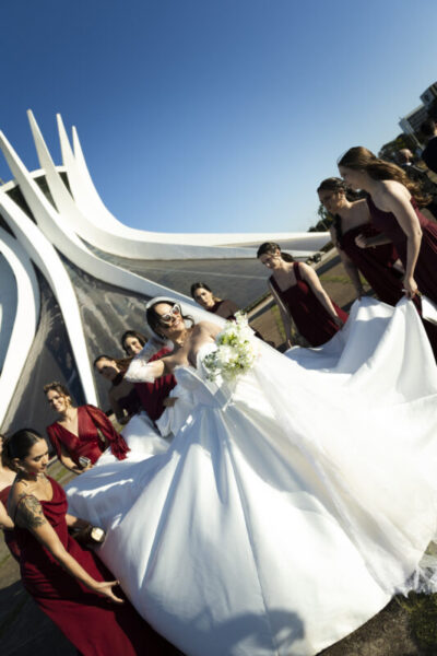 A primeira ideia para a grande celebração foi na Itália, em Lake Como, mas pelos altos custos, o casal optou pelo Brasil, mais precisamente a capital federal. O processo de organização durou cerca de um ano e meio e foi guiado por um wedding planner. “Eu fiz todas as minhas entrevistas com esse livro, anotava todas as informações”, explica. Além disso, Larissa e Ryan contaram com um serviço de cerimonial, já que necessitavam de uma equipe que se comunicasse com os convidados internacionais.