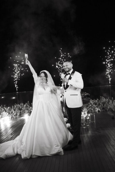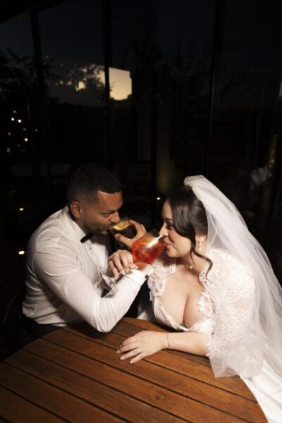 O bar foi outro ponto alto da festa. Cada drink foi escolhido com carinho para representar os países que fazem parte da trajetória dos noivos — Brasil, Itália e Inglaterra. Entre os clássicos estavam o Negroni e o Aperol Spritz (Itália), a caipirinha de limão siciliano (Brasil) e o Old Fashioned (Inglaterra).