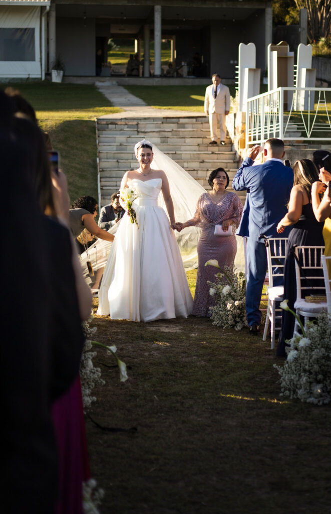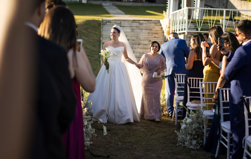 E quando se trata do momento ápice da cerimônia, a entrada da noiva permanece como uma das memórias mais marcantes para o casal, principalmente ao ver a emoção estampada no rosto dos convidados.