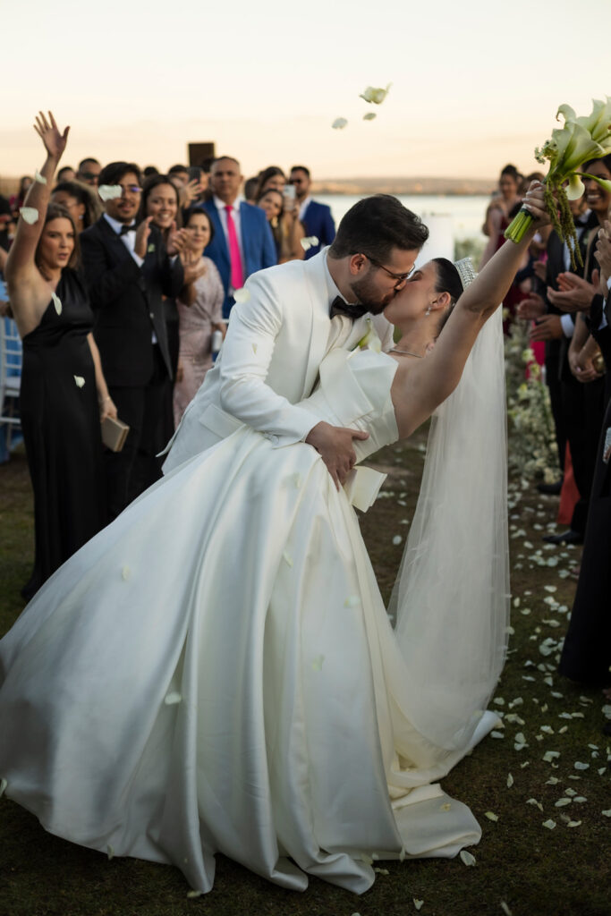O pedido de casamento trouxe o tom cinematográfico que marcaria toda a celebração. Em Paris, diante da Torre Eiffel, Gustavo ajoelhou-se e fez a pergunta que mudaria suas vidas dali para frente. O detalhe mais surpreendente é que tudo foi registrado sem que Isabela desconfiasse de nada, já que o casal participava de um ensaio fotográfico com uma fotógrafa brasileira que vive na cidade. O “sim” veio carregado de emoção e ficou eternizado em imagens que guardam a magia daquele instante único.
