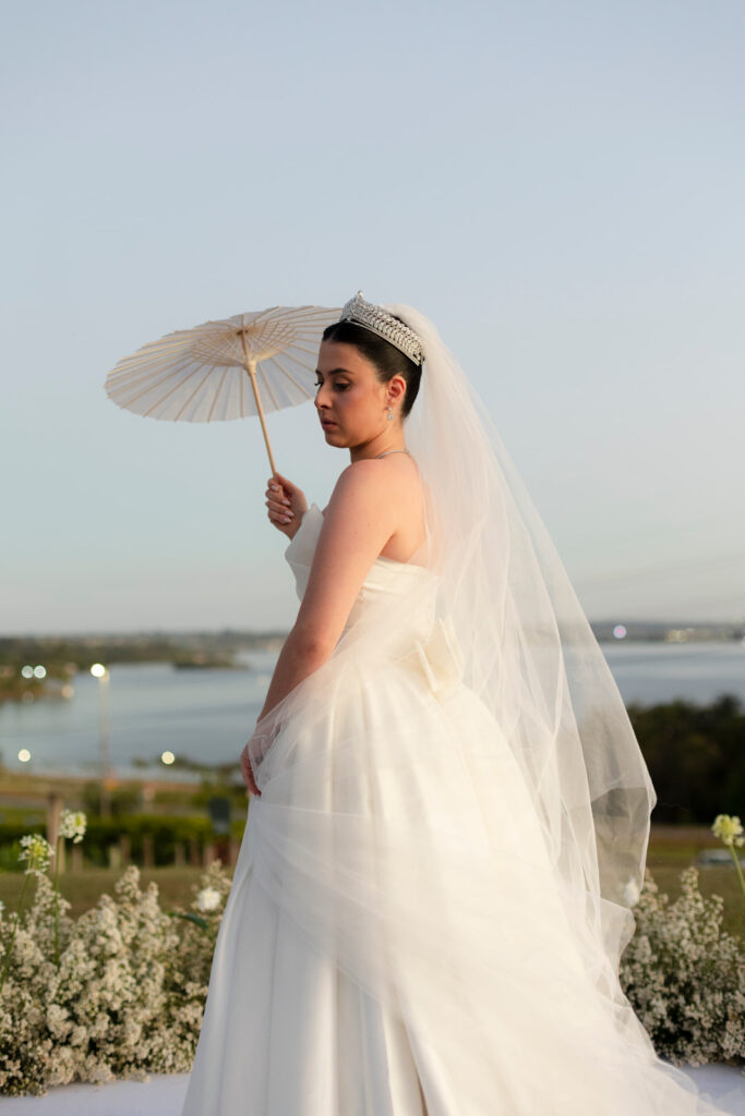 Todo esse conceito foi idealizado e executado com sensibilidade pela equipe da O que há de vir, responsável também pelo buquê e pelos acessórios que completaram a estética da celebração. “Gabriele conseguiu traduzir nossas referências e ideias em um cenário elegante, atual e cheio de significado.”, conta o casal.