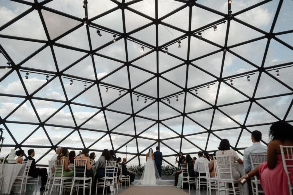 Desde o início, o noivo tinha um desejo: fugir do óbvio. A Torre Digital, um dos cartões-postais mais emblemáticos de Brasília, surgiu como uma lembrança do pedido que não foi. E o acaso, ou a mão de Deus, fez com que, no dia em que estavam prestes a fechar com outro espaço, eles passassem por lá.