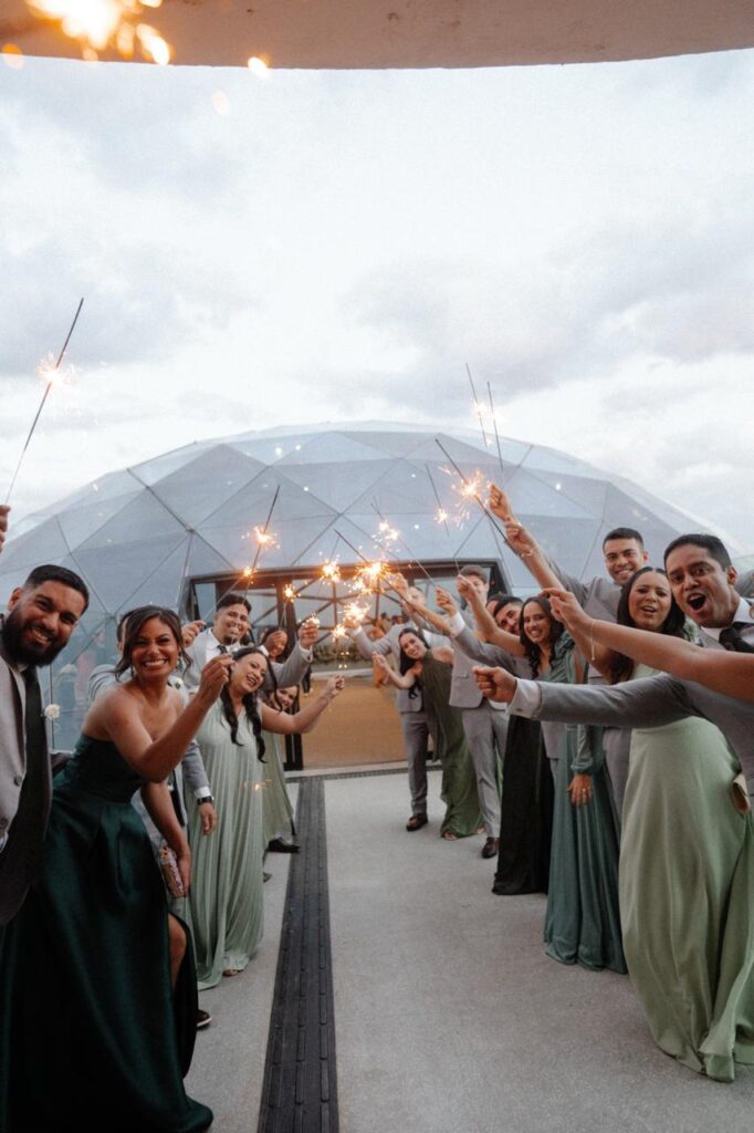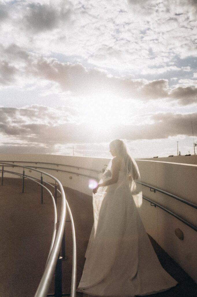 No grande dia, as músicas escolhidas deram o tom de emoção: o noivo entrou ao som de Simple Man, de Lynyrd Skynyrd — um reflexo de sua forma serena e autêntica de ver a vida. Já a noiva surgiu com Goodness of God, de CeCe Winans, um cântico de gratidão e entrega. Cada nota parecia flutuar entre as colunas da Torre, encontrando o pôr do sol que coloria o céu.