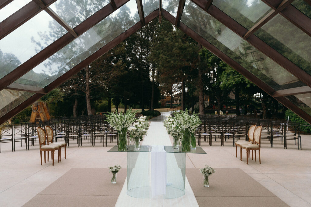 Desde antes do noivado, a escolha do cerimonial já estava definida. A condução do grande dia ficou sob responsabilidade de Handrea Jansen, cuja atuação impecável já havia sido vista no casamento do irmão da noiva. Atenta, organizada e firme na coordenação dos fornecedores, Handréa garantiu que tudo acontecesse com precisão e tranquilidade. A segurança transmitida por ela foi determinante para que o casal aproveitasse cada instante.