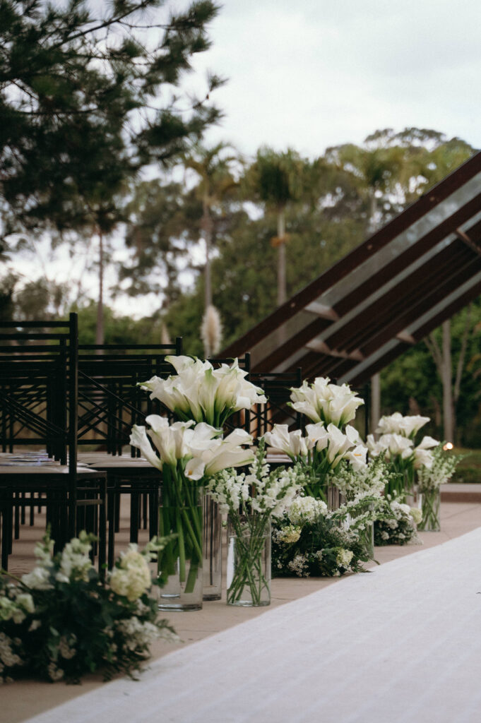 Durante a cerimônia, um dos momentos que mais surpreendeu Letícia foi a decoração da cerimônia. Ao entrar e ver o altar repleto de copos de leite, ela se emocionou. Sabia que ficaria bonito, mas teve as expectativas superadas.