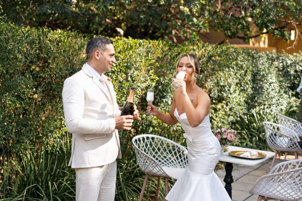 O espaço se destacou não apenas pelo cenário, mas pela experiência gastronômica. Para o momento da cerimônia, o casal optou por um brunch com coquetel volante — escolha que se encaixava perfeitamente ao horário da tarde. O serviço do Vert Café foi amplamente elogiado, tanto pela qualidade quanto pela variedade. Entre os destaques, um item ganhou o favoritismo absoluto de todos os presentes: o cookie de amêndoas.