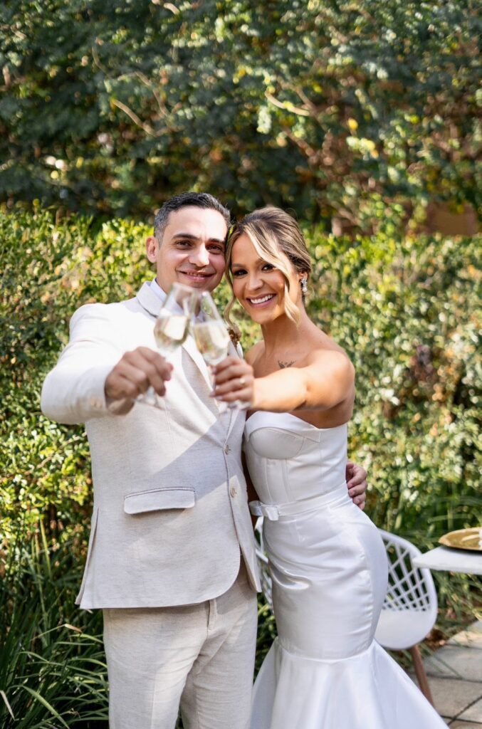 Sem assessoria completa, os próprios noivos conduziram todas as decisões. Ainda assim, o resultado surpreendeu. A cerimônia aconteceu no próprio Vert Café, em um ambiente intimista, com cerca de 50 convidados, onde cada detalhe foi pensado para acolher. Já a festa foi organizada pelo casal na casa do pai do noivo.