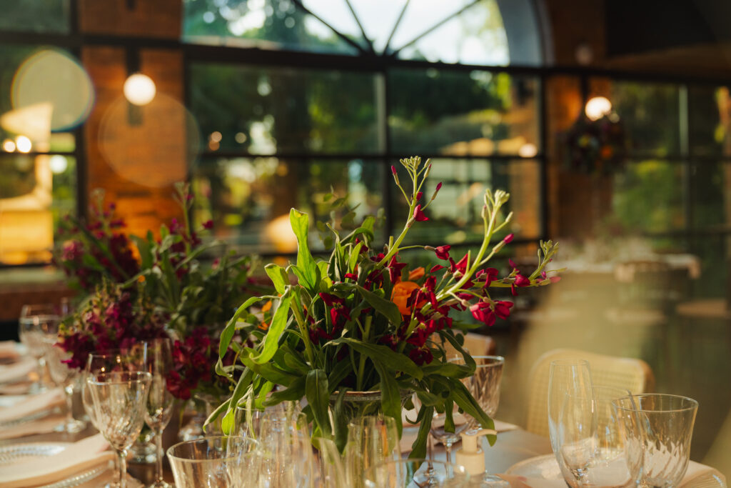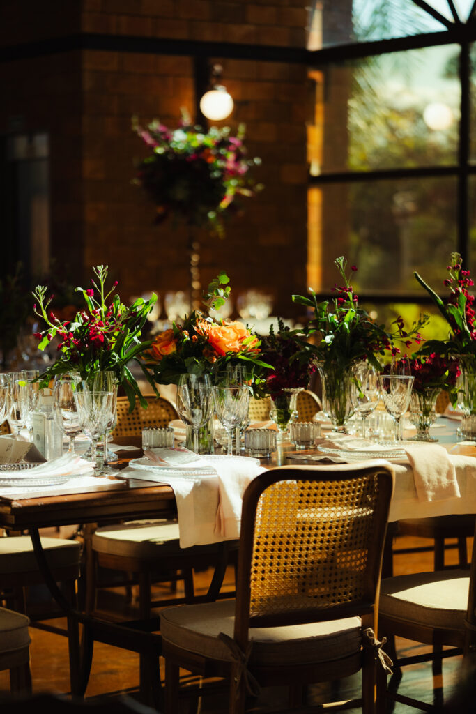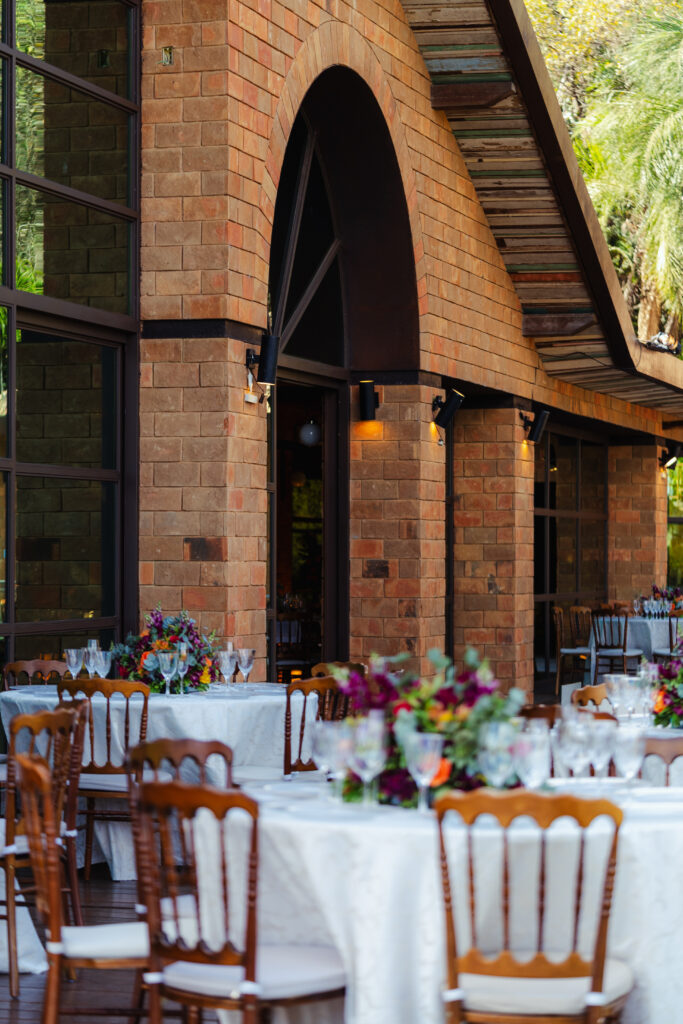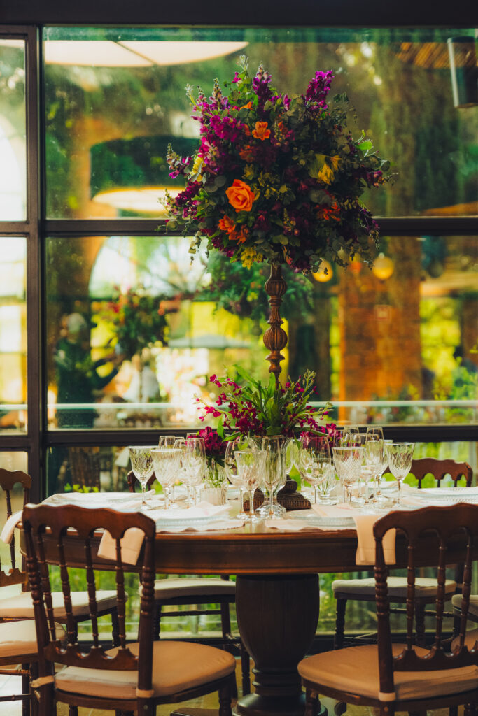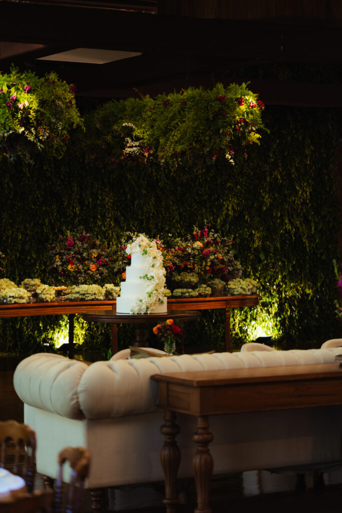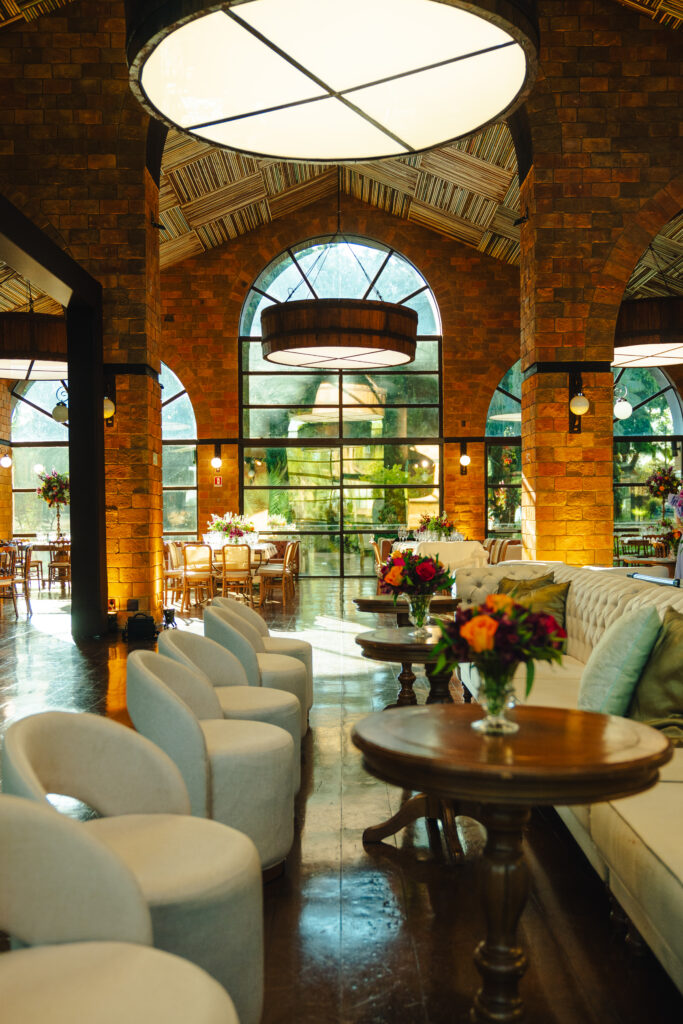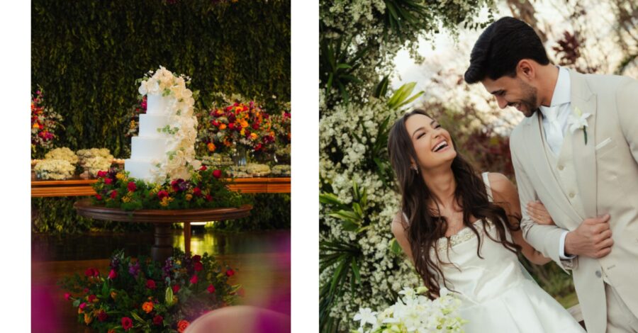Já a decoração, assinada com uma paleta vibrante de laranja, rosa e amarelo, trouxe vida e energia para o espaço. Um verdadeiro respiro de felicidade! Um dos pontos altos foi a árvore rosa no bar — um sonho pessoal da noiva que virou realidade e encantou os convidados.