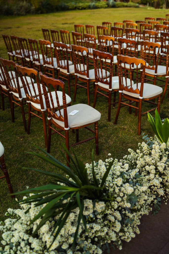 Dicas dos noivos: “Planejem tudo com calma e antecedência. No grande dia, confiem nos seus fornecedores e aproveitem cada segundo, porque tudo passa muito rápido. Nenhum imprevisto será maior do que a felicidade desse momento. Pensem sempre no conforto dos convidados, isso faz toda a diferença para que todos tenham uma experiência memorável. E o mais importante: façam um casamento com a identidade de vocês. Não foquem nas tendências do momento ou nas opiniões alheias. Esse é um dia único e especialmente para vocês, então não se prendam a cobranças externas. Escolham tudo com base no que faz sentido para a história que estão construindo juntos. Honrem aqueles que sempre estiveram com vocês. Escolham fornecedores que compartilham do mesmo propósito e dos princípios em que vocês acreditam. O mais importante é que o casamento seja o melhor dia da vida de vocês, rodeado de pessoas que celebrem por vocês e com vocês”.
