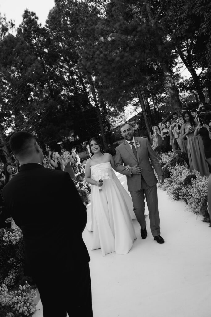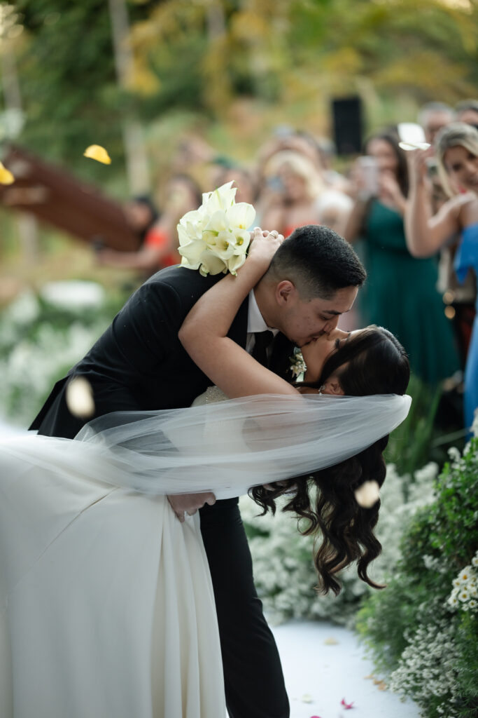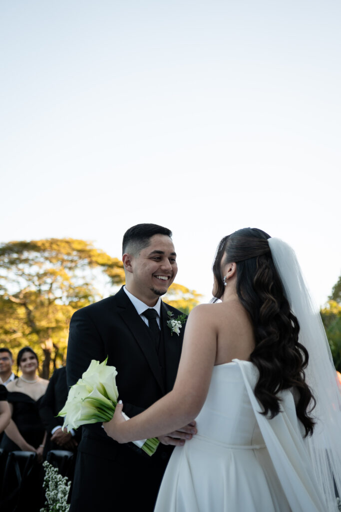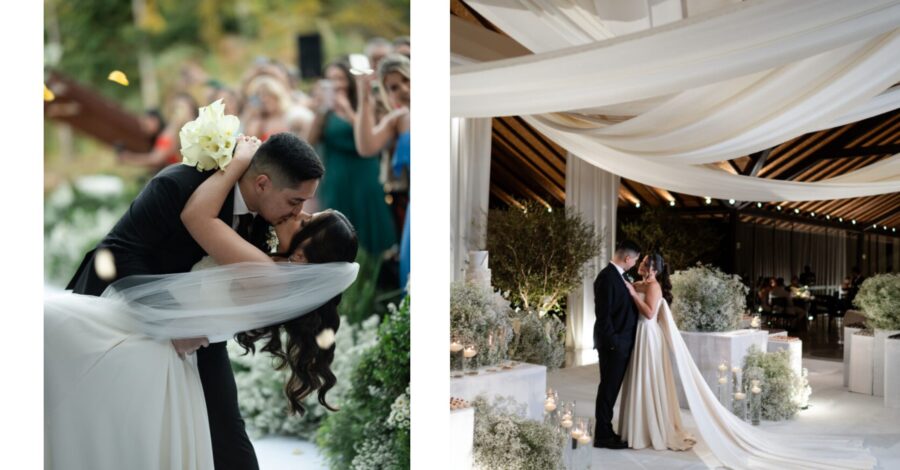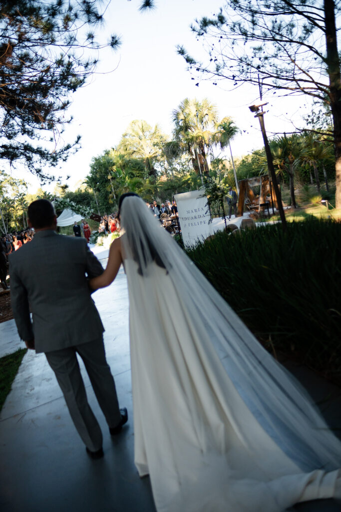Na cerimônia, a música, escolhida majoritariamente pelo noivo, embalou os momentos com significado. A entrada da noiva ao som de “Grande é o Senhor” marcou o início de um dos instantes mais intensos de sua vida. Ver o altar, o homem que amava à sua espera, e todas as pessoas queridas reunidas, transformou o sonho de Maria Eduarda em realidade palpável.