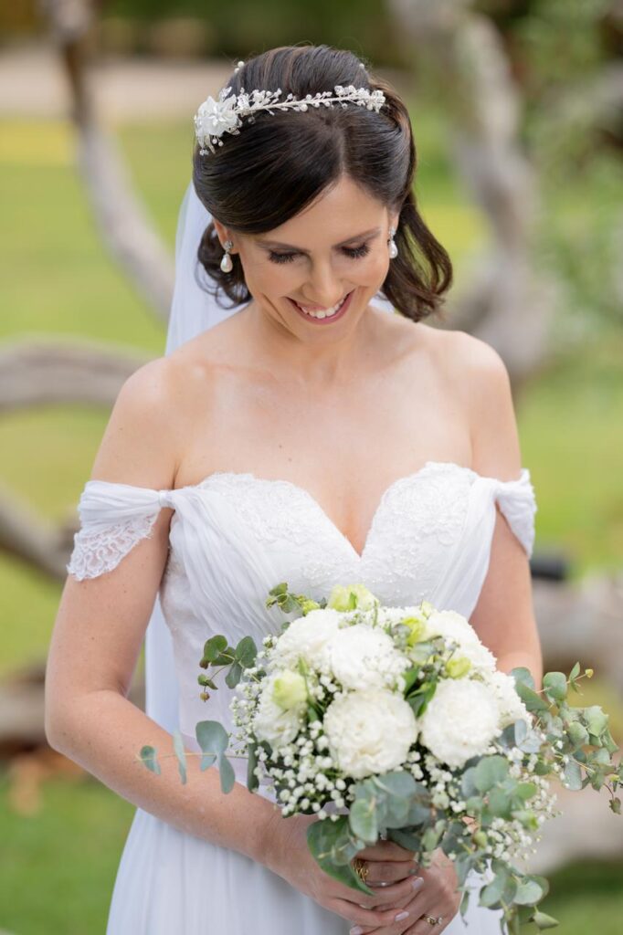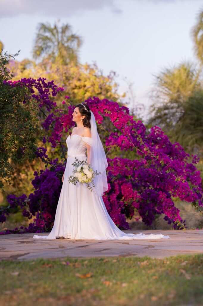 O vestido de Caroline foi a expressão perfeita da noiva: elegante e exatamente como ela sonhava. “Foi amor à primeira prova!”, lembra a noiva, que hoje vende o vestido com carinho, pronta para passá-lo adiante a outra noiva sonhadora. As alianças, lisas e atemporais, foram escolhidas com a mesma simplicidade e sofisticação que marcaram o estilo do casal.