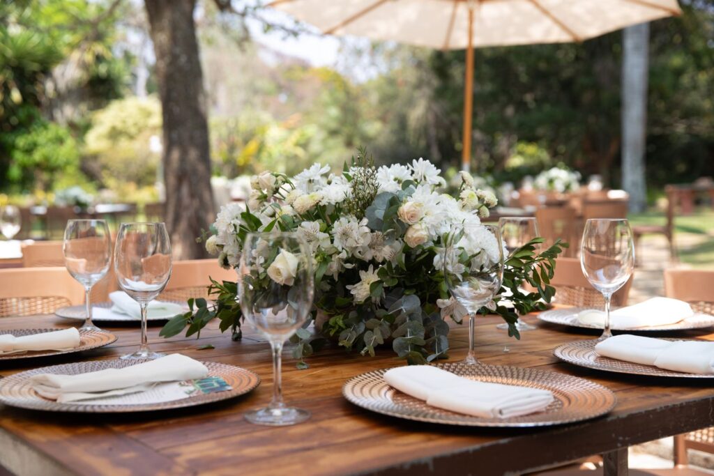 O brunch do casamento foi um sucesso absoluto. O Buffet da Corte preparou uma mesa posta com frios, pães, tortas e empratados frescos e deliciosos — tudo harmonizado com champanhe, mimosas e kir royale. Os convidados não economizaram nos elogios. “Foi um dos pontos altos da festa! Todo mundo amou! A comida estava primorosa e os garçons eram super atenciosos”, contam os noivos.