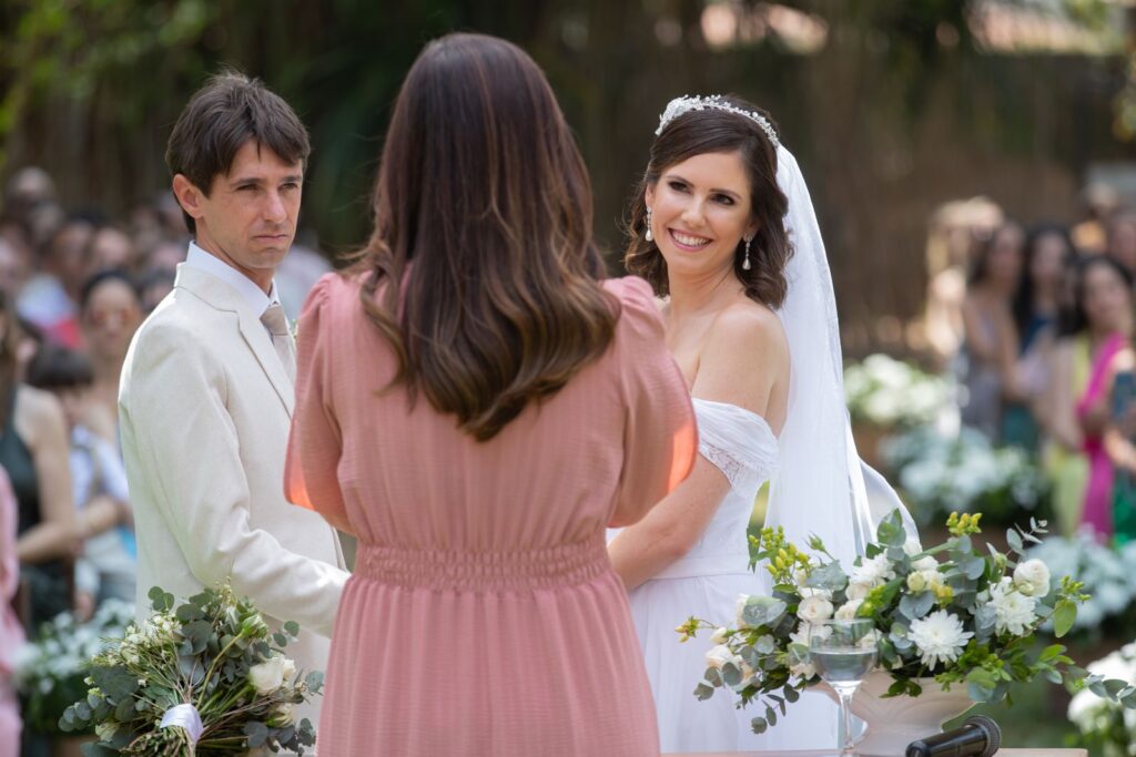 Em apenas três meses, planejaram tudo! Caroline conta que o Vip Noivas foi essencial nesse processo, ajudando na escolha dos fornecedores. “As meninas do WhatsApp foram uma salvação!”, brinca. Como faziam questão de uma cerimônia especial, foi por meio da indicação do grupo que confiaram à Renata Dias a missão de conduzir a celebração. “Fez toda a diferença para que nossa união fosse ainda melhor do que tínhamos imaginado.”