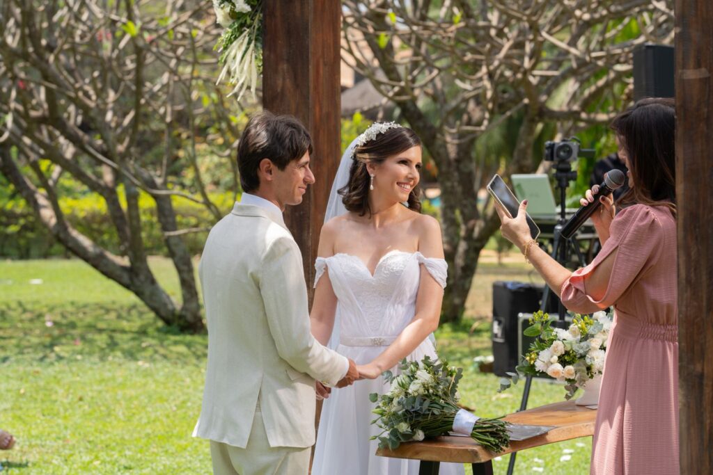 A cerimônia teve uma energia inexplicável. Passarinhos cantando ao redor e um clima de amor palpável tomaram conta do ambiente. “Foi quase possível palpar a presença do amor. Realmente ficará para sempre guardada em nossos corações.”