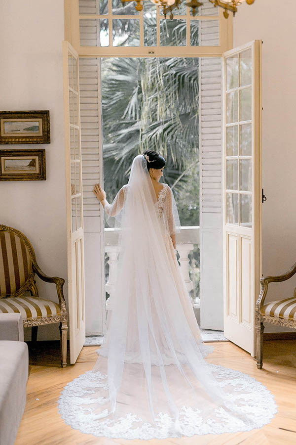 Desde o início, o sonho de Camila era ter uma cerimônia ao ar livre e rodeada de verde. Como ela organizou o casamento morando fora, contou com a ajuda da assessoria, da mãe e das madrinhas para ter tudo do seu jeito. Ela veio duas vezes ao Brasil para provas de vestido, penteado, buffet e arranjos.
