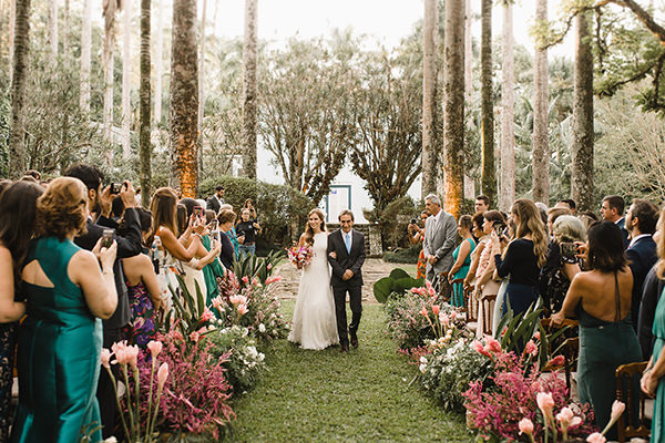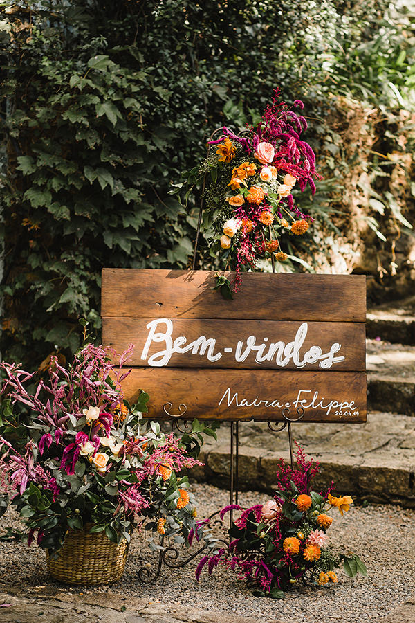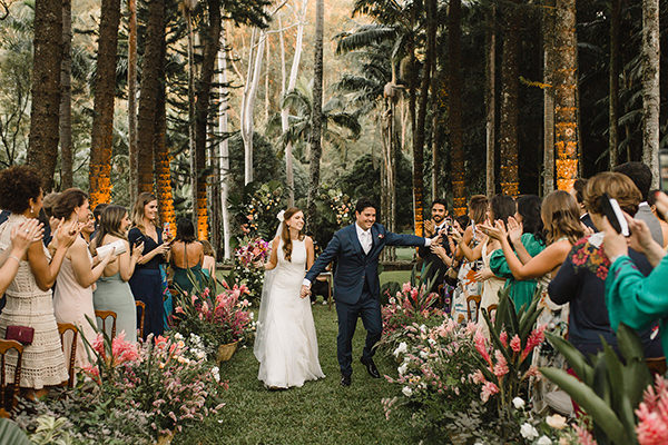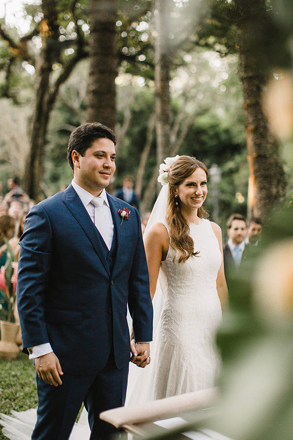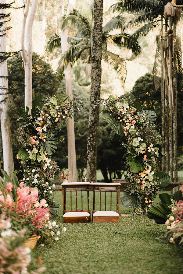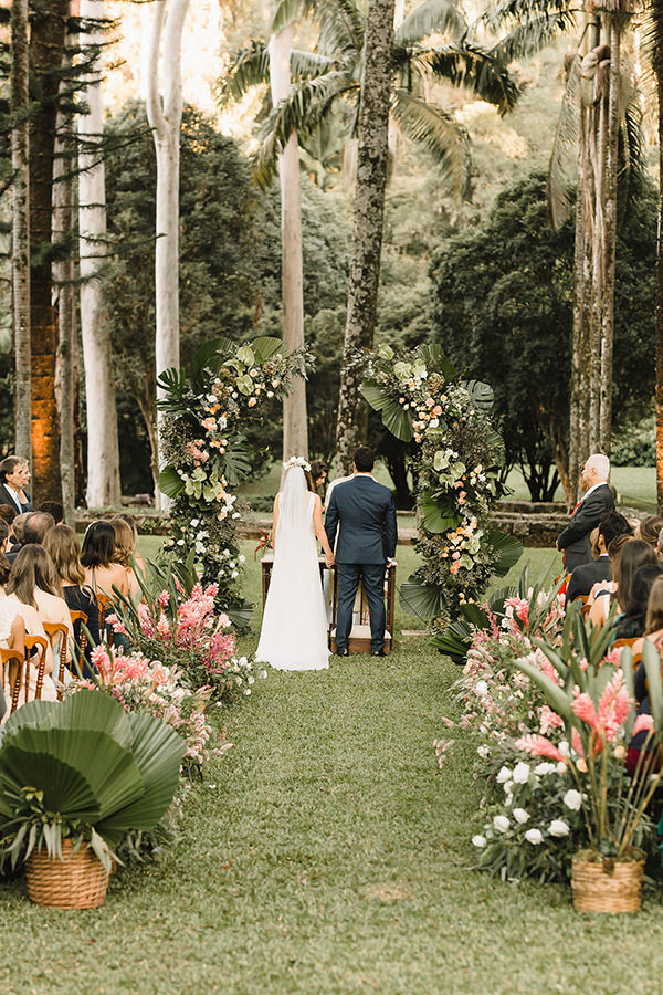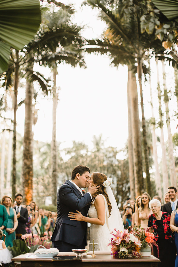 Na hora de escolher o local do grande dia, os noivos realizaram um desejo antigo. “Tínhamos o sonho de casar em um lugar aberto, com muita natureza, pois adoramos confraternizar com nossas famílias e amigos ao ar livre.” No grande dia, em abril de 2019, Maira e Felippe disseram “sim” diante de 180 convidados em uma linda e emocionante cerimônia em meios à palmeiras imperiais.