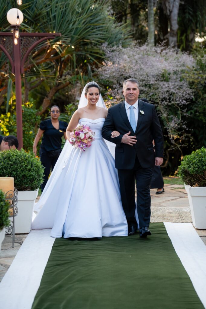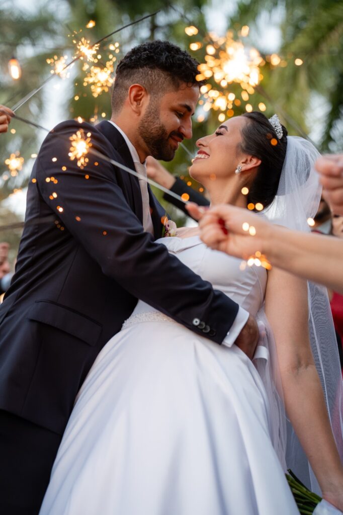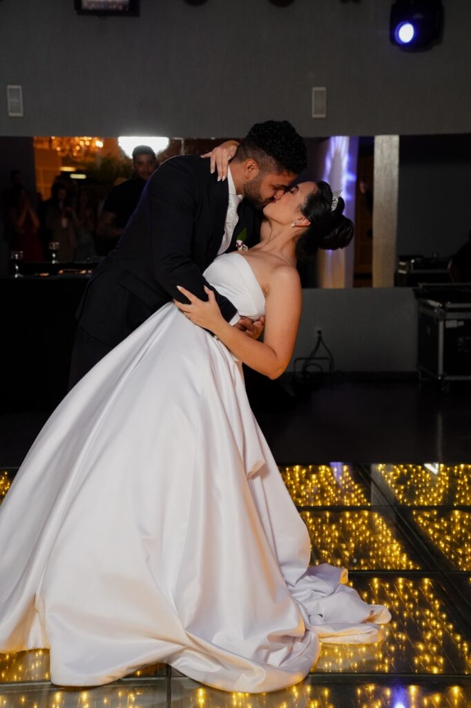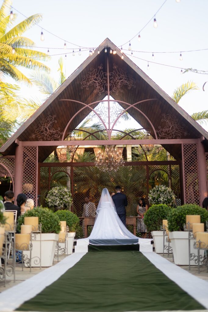 Entre os momentos favoritos, dois brilham: a sensação indescritível de entrar como noiva e sair casada, e a primeira dança ao som de ‘Esperando na Janela’ de Gilberto Gil, um forrozinho leve e cheio de ternura. A surpresa da noite ficou para a pista de LED, planejada de última hora e responsável por transformar o ambiente completamente.