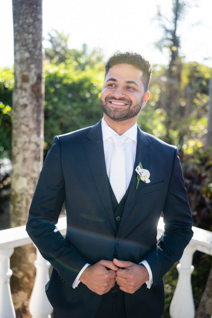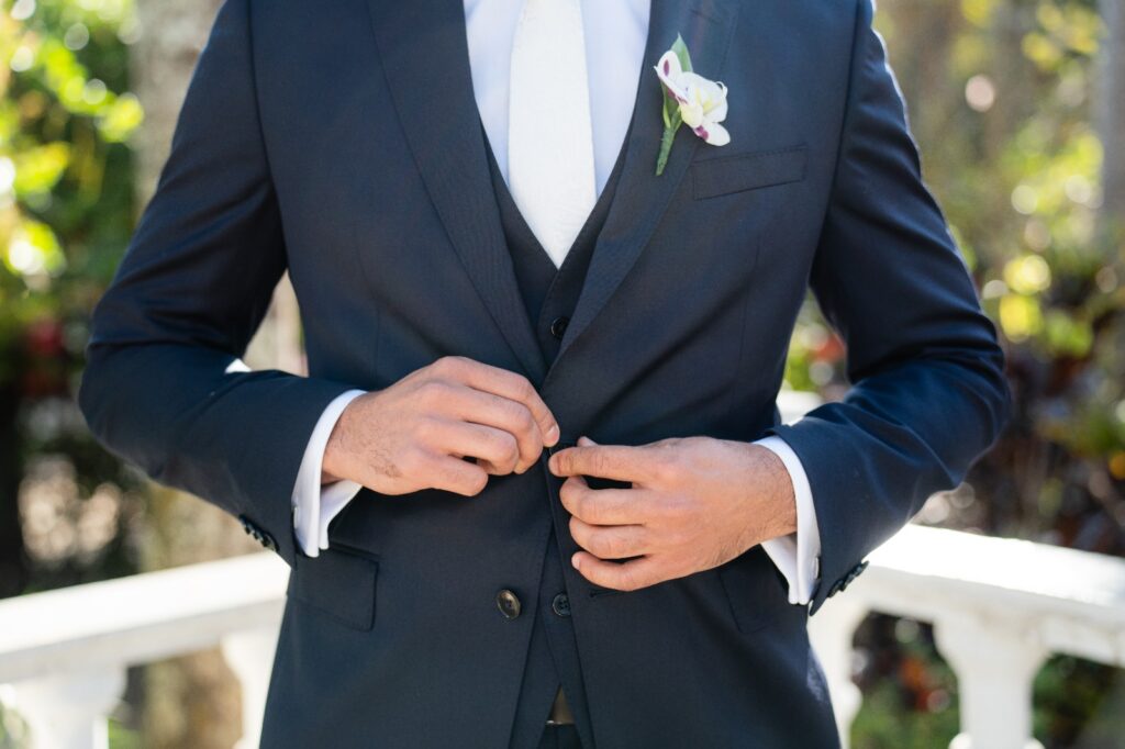 Os acessórios também seguiram a linha da elegância minimalista. Já o noivo brilhou com um clássico da Hugo Boss com corte perfeito, caimento impecável e sobriedade que combinou com o clima do evento.