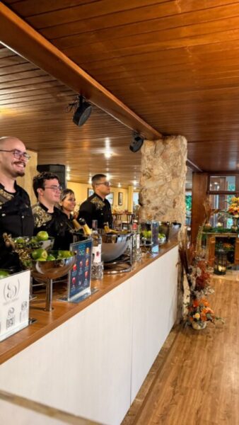 Para 2026, a tendência são drinks autorais e sensoriais, criados a partir da personalidade da celebração. Além disso, animações de bar — com efeitos visuais, estímulos aromáticos e interação direta — ganham destaque e contribuem ativamente para o envolvimento coletivo.