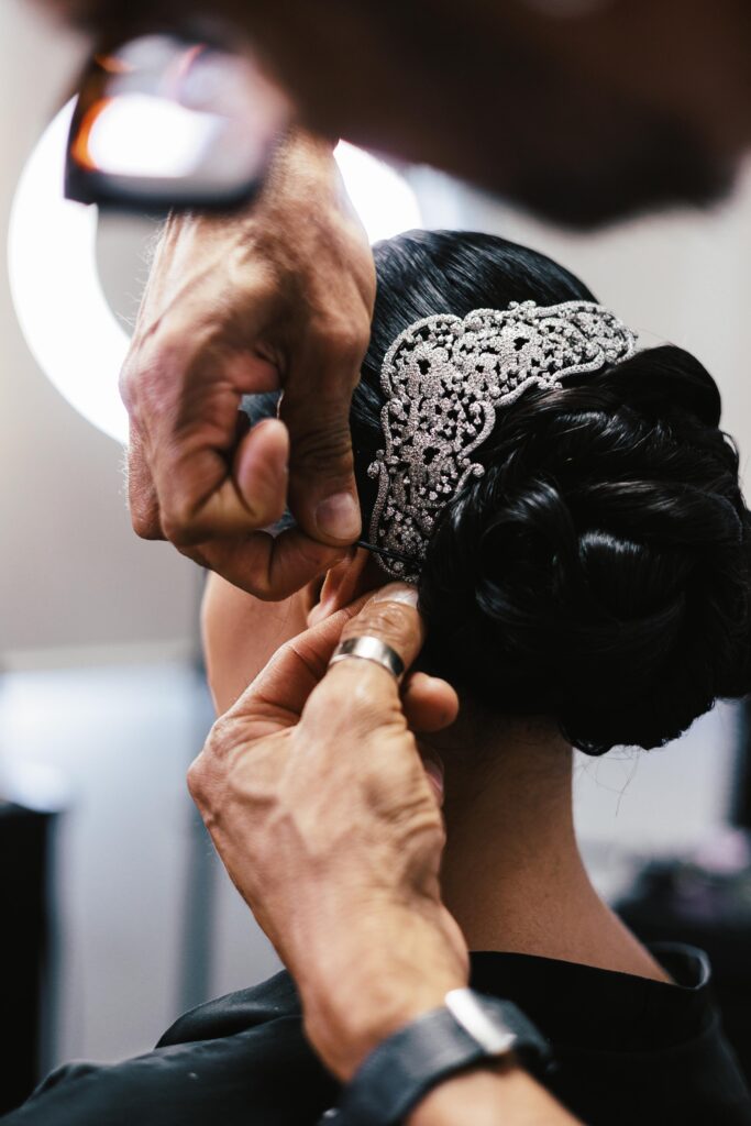 Essa mudança começa pelo entendimento do look como unidade. Para os especialistas em joias da Noviah, a escolha não parte da peça isolada, mas do contexto completo. “Joias e grinaldas devem complementar o look, nunca disputar atenção com o vestido ou com a noiva.” O ponto central está na coerência, ou seja, em observar o estilo do vestido, o penteado, o horário da cerimônia e, sobretudo, a personalidade de quem vai usar. “Hoje, a tendência é uma escolha mais consciente: menos volume e mais intenção.” Peças delicadas, brilho sutil, materiais leves e design autoral constroem harmonia e elegância.